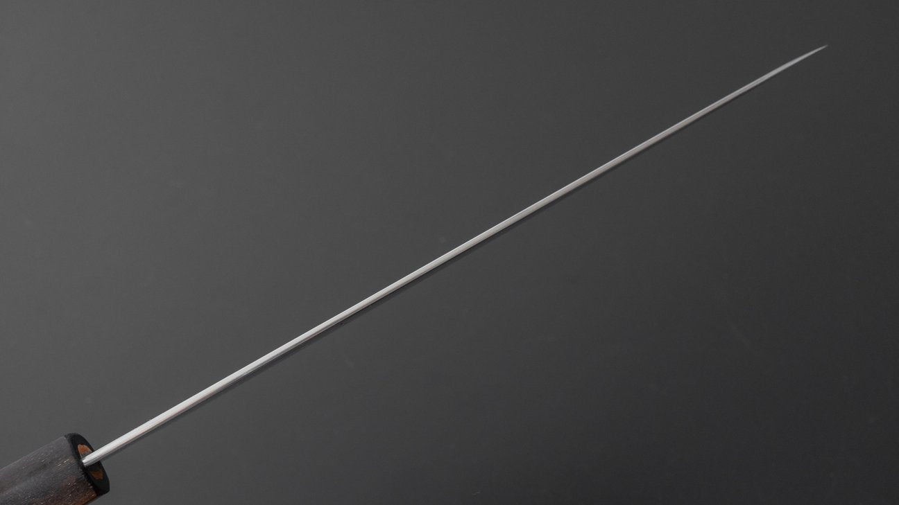 Kyuzo is a sharpener from Sakai. Son of one of the busiest sharpeners in this region and student of one of the most legendary and influential sharpeners. His style is a combination of these two teachings and is most known for this wide-bevel sharpening with a crisp and visible shinogi line. An extremely challenging way of grinding where symmetry is the most important factor. Kyuzo’s blades are characterized by their exceptional cutting performance and easy to maintain bevels. These pronounced wide bevels are easy to follow when thinning the blade resulting in better performance over time. In addition to the high level grind and sharpening these knives feature comfortably chamfered spine and choil increasing the overall quality of the blade.