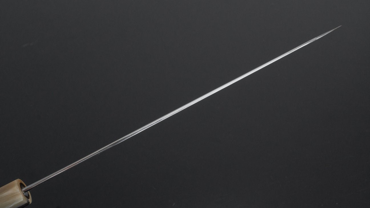 Kyuzo is a sharpener from Sakai. Son of one of the busiest sharpeners in this region and student of one of the most legendary and influential sharpeners. His style is a combination of these two teachings and is most known for this wide-bevel sharpening with a crisp and visible shinogi line. An extremely challenging way of grinding where symmetry is the most important factor. Kyuzo’s blades are characterized by their exceptional cutting performance and easy to maintain bevels. These pronounced wide bevels are easy to follow when thinning the blade resulting in better performance over time. In addition to the high level grind and sharpening these knives feature comfortably chamfered spine and choil increasing the overall quality of the blade.