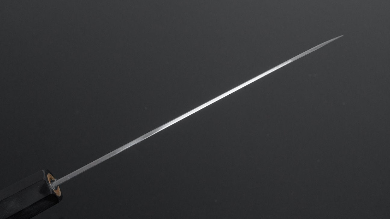 Master Kenji Togashi is one of the most celebrated and distiguisted blacksmith from Sakai. Not only a “Dentokogeshi” (certified traditional craftsman) but also awarded with a medal from the emperor for his accomplishments and service. One of the, if not the, most honourable and prestigious decorations in Japan. To be awarded such a prestigious titles is proof of vast knowledge and skill. He is amongst the very few remaining blacksmiths in Japan with the skillset to forge water-quenched Honyaki blades. A true master of traditional techniques. Togashi made knives are characterised by their durability and hardness while still easy to sharpen. Not only the steel quality but also their in-house sharpening is praiseworthy. In charge of the in-house sharpening is Kenya Togashi, the third son of Togashi San, and from him we see some of the most true and consistent single and double-bevel sharpening we've come across. All their knives really feel like they've been made with the intention to last for years.