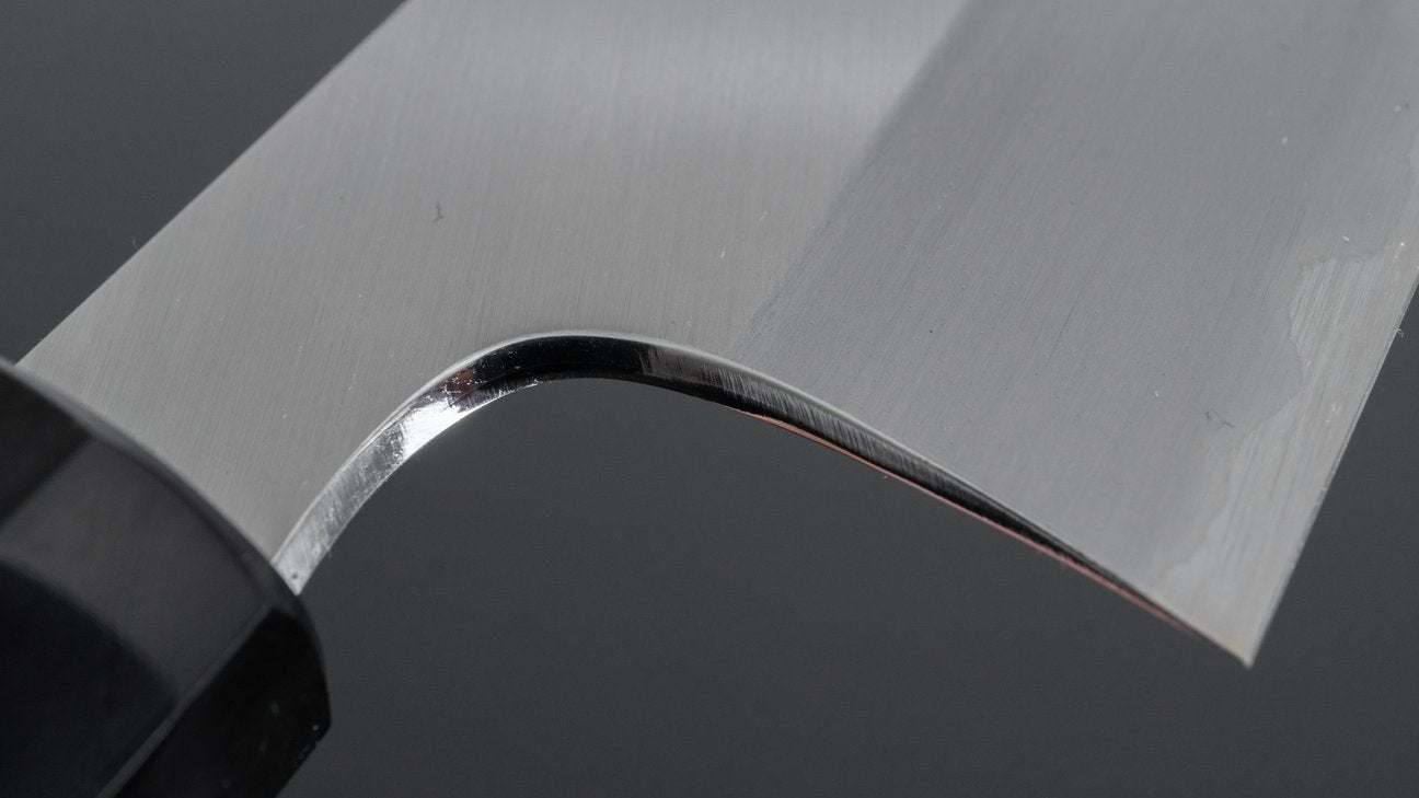 The Santoku is every bit as versatile as a Gyuto, but it’s more at home in everyday cooking. Probably the most used to-go knife at home. It’s easy to handle, super nimble, and great for just about any kitchen task.