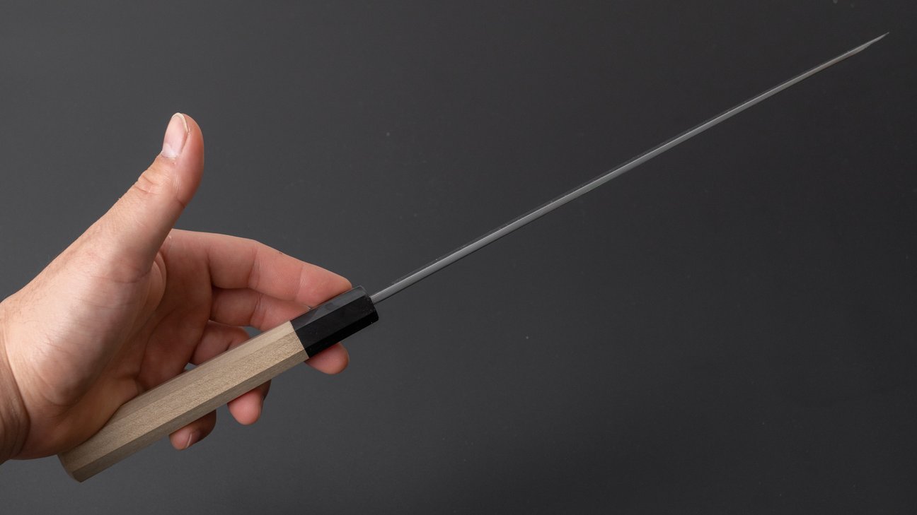 The Yanagiba is the traditional Japanese slicer, often referred to as the “sushi knife.” It’s built for slicing boneless proteins with high precision. While it’s a bit more specialised and less versatile than a Sujihiki, a well-sharpened Yanagiba delivers outstanding performance thanks to its unique geometry and razor-sharp edge.