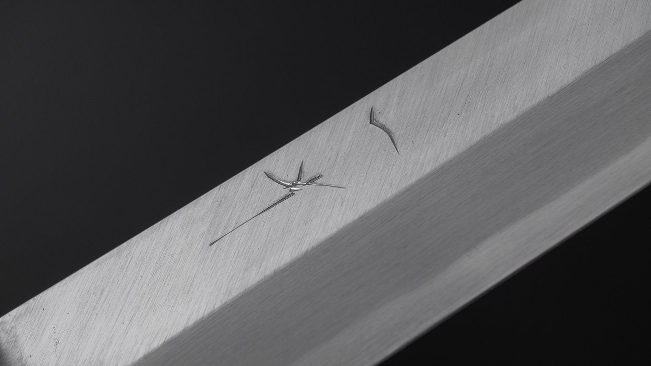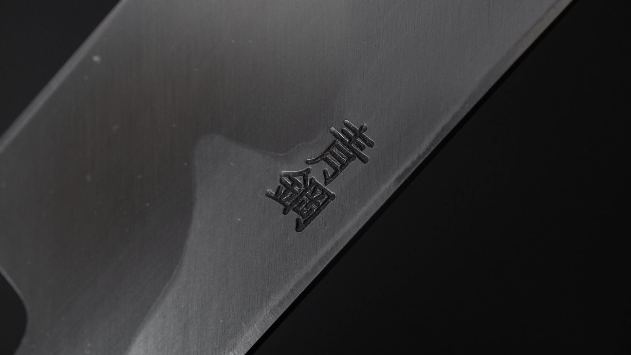 This is a carbon steel knife. Carbon steel is a non-stainless steel that lacks sufficient chromium and/or nickel to protect it from oxidation. As a result, it reacts to moisture and oxygen. While this may sound like a downside, it’s actually a key feature. Carbon steel forms a unique patina over time, is easy to sharpen, and offers excellent edge retention.