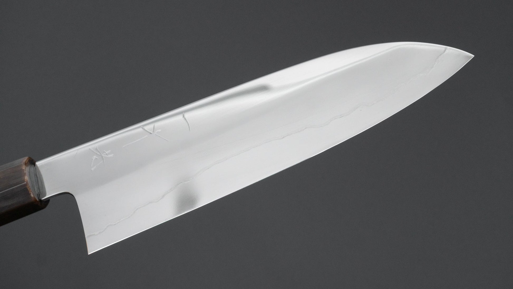 Kikuchiyo is a blacksmith based in Sakai. He was under tutelage of a legendary blacksmith in this region for well over two decades before taking over his masters forge. He’s known for his high quality White and Blue steel blades but is particularly recognized for his excellent stainless Ginsan (Silver #3) and Honyaki blades. He is an expert of temperatures and is able to achieve the correct hardness and gumminess through his technique. He always works with great ambition and efficiency hoping to develop his skills as a craftsman, modeling each of his knives on the image of his master’s forge.