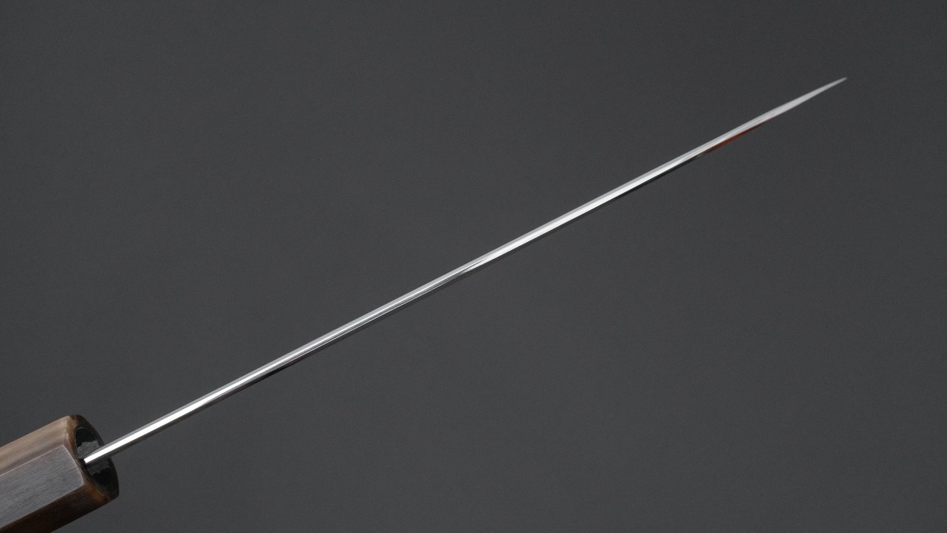 The Santoku is every bit as versatile as a Gyuto, but it’s more at home in everyday cooking. Probably the most used to-go knife at home. It’s easy to handle, super nimble, and great for just about any kitchen task.