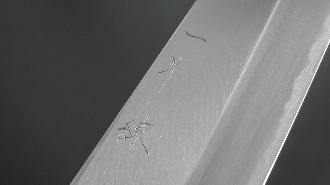 “Ren” is the alias for an apprentice sharpener in Sakai. He is under the tutelage of one of the most famous and influential sharpeners in this region. The skills of this young sharpener have grown tremendously over the last two years, the consistency, the fit and finish and polish have all improved and his personal style is developing more with every batch. He is on his way to become one of the best double bevel sharpeners in Sakai. The prices reflect his skill level and are kept low to support him in training.