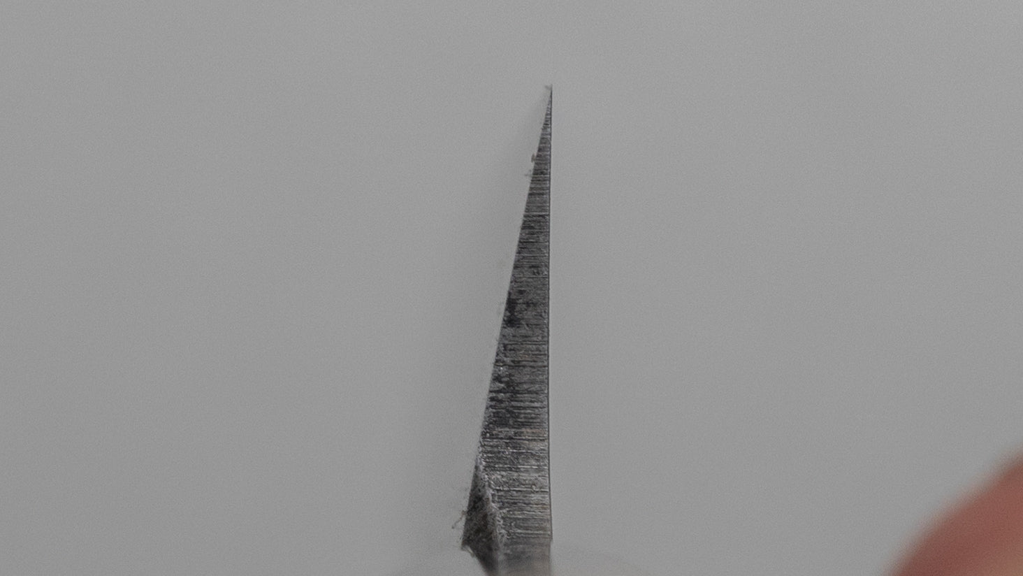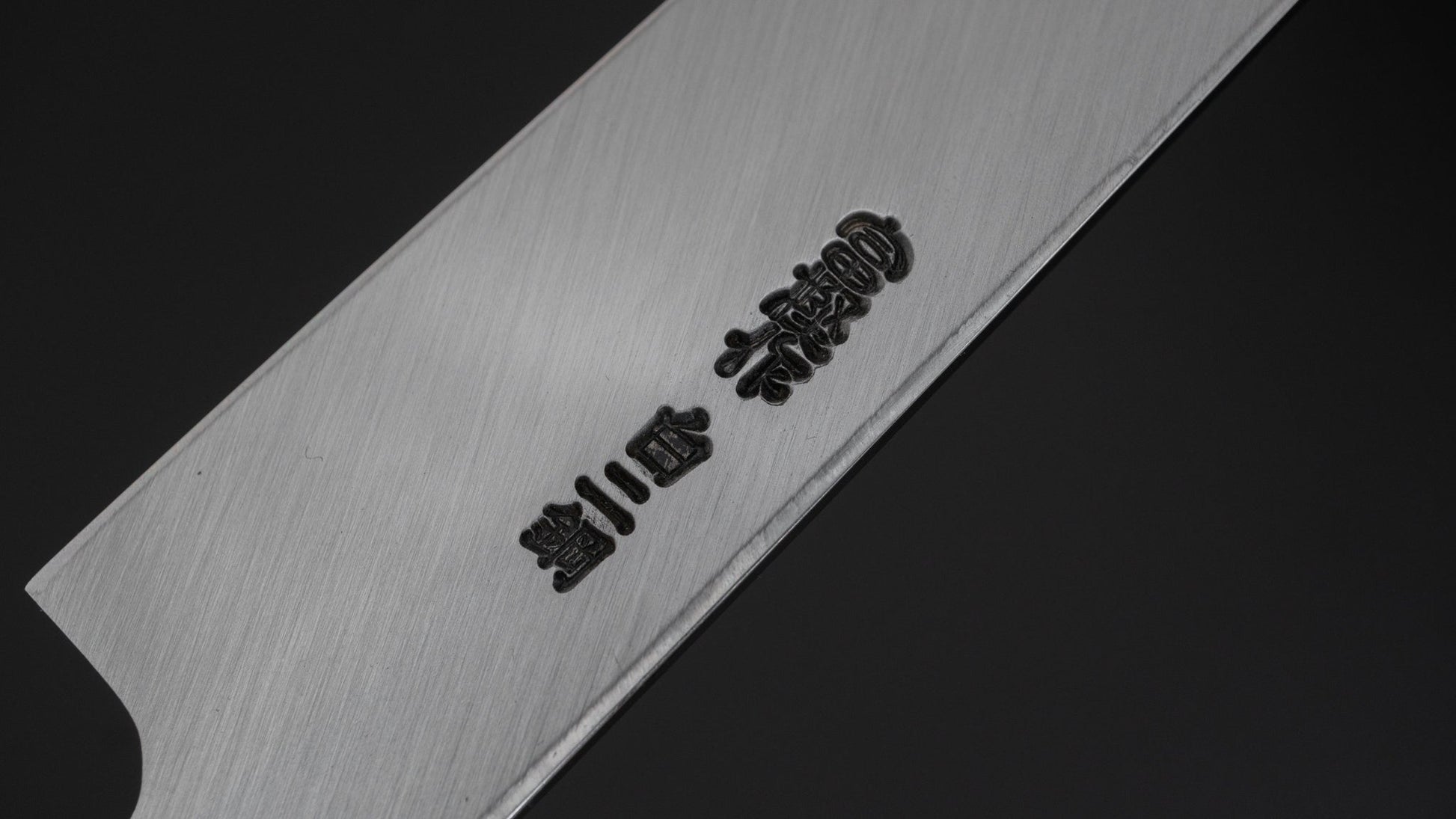 This is a carbon steel knife. Carbon steel is a non-stainless steel that lacks sufficient chromium and/or nickel to protect it from oxidation. As a result, it reacts to moisture and oxygen. While this may sound like a downside, it’s actually a key feature. Carbon steel forms a unique patina over time, is easy to sharpen, and offers excellent edge retention.