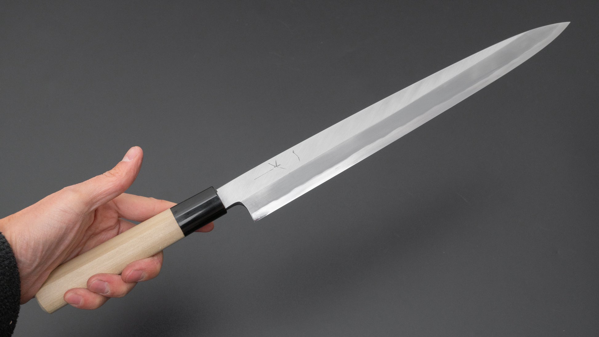The Yanagiba is the traditional Japanese slicer, often referred to as the “sushi knife.” It’s built for slicing boneless proteins with high precision. While it’s a bit more specialised and less versatile than a Sujihiki, a well-sharpened Yanagiba delivers outstanding performance thanks to its unique geometry and razor-sharp edge.