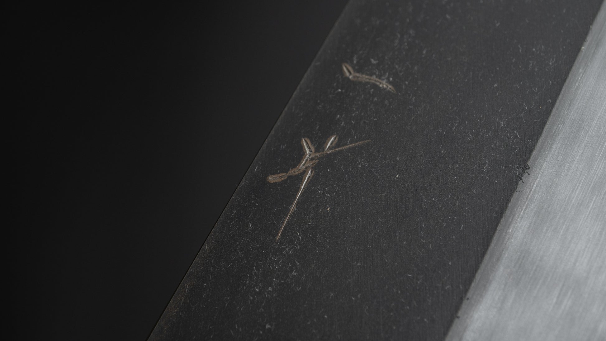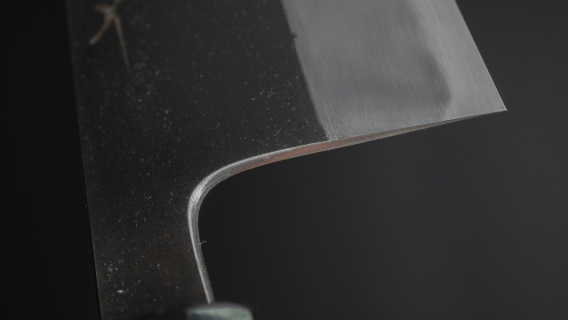 This way of finishing creates the dark and beautiful Kurouchi finish found on this special line. While both types of Kurouchi finishes can fade over time, the etching technique used by sharpener may fade faster.