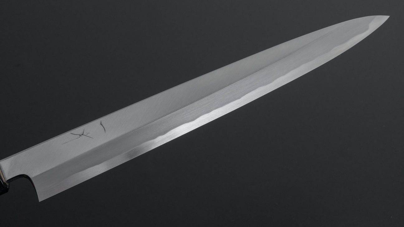 The traditional Japanese slicer. The king of knives and ofter referred to as ’Sushi knife’ it is used for slicing boneless protein. More specific and less versatile compared to the Sujihiki, the performance of the properly sharpened Yanagiba will yield much higher quality results due to their geometry and sharpness. Characteristics in steel are pronounced in single bevel knives and different sharpeners make for much variety.