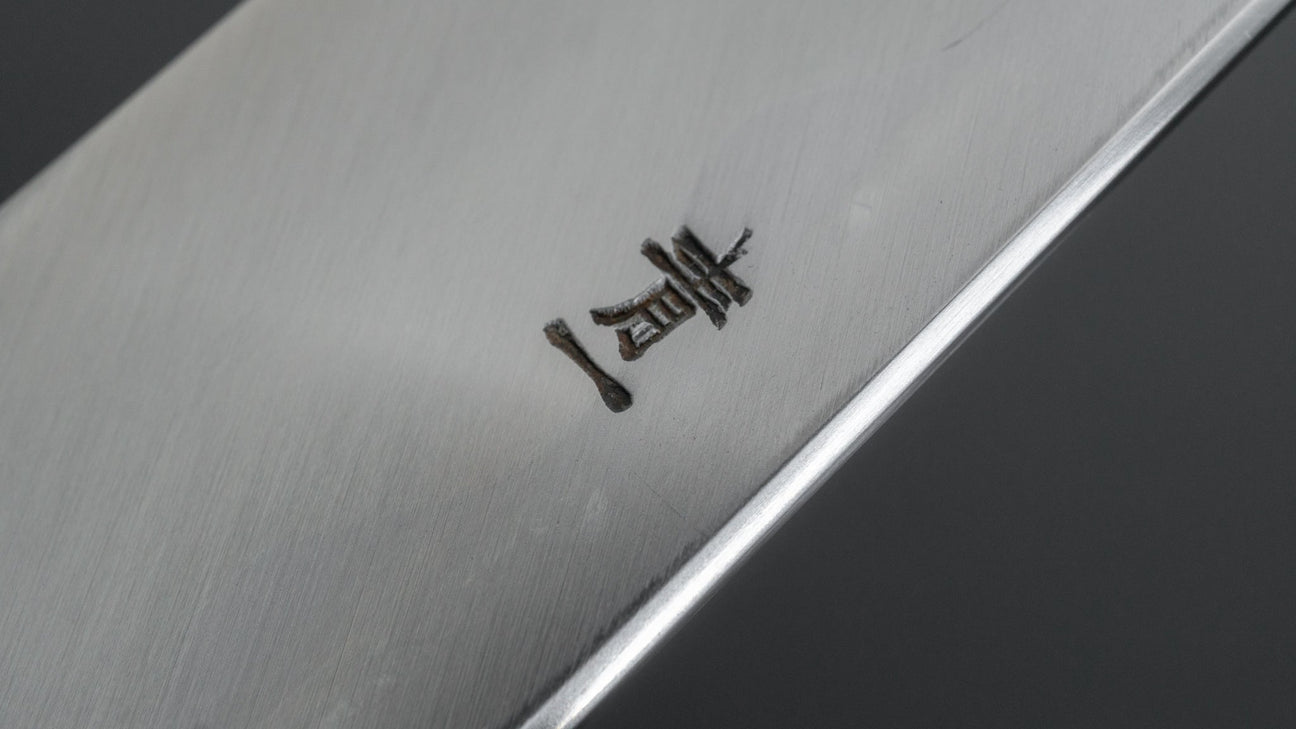 This is a carbon steel knife. Carbon steel is a non-stainless steel that lacks sufficient chromium and/or nickel to protect it from oxidation. As a result, it reacts to moisture and oxygen. While this may sound like a downside, it’s actually a key feature. Carbon steel forms a unique patina over time, is easy to sharpen, and offers excellent edge retention.