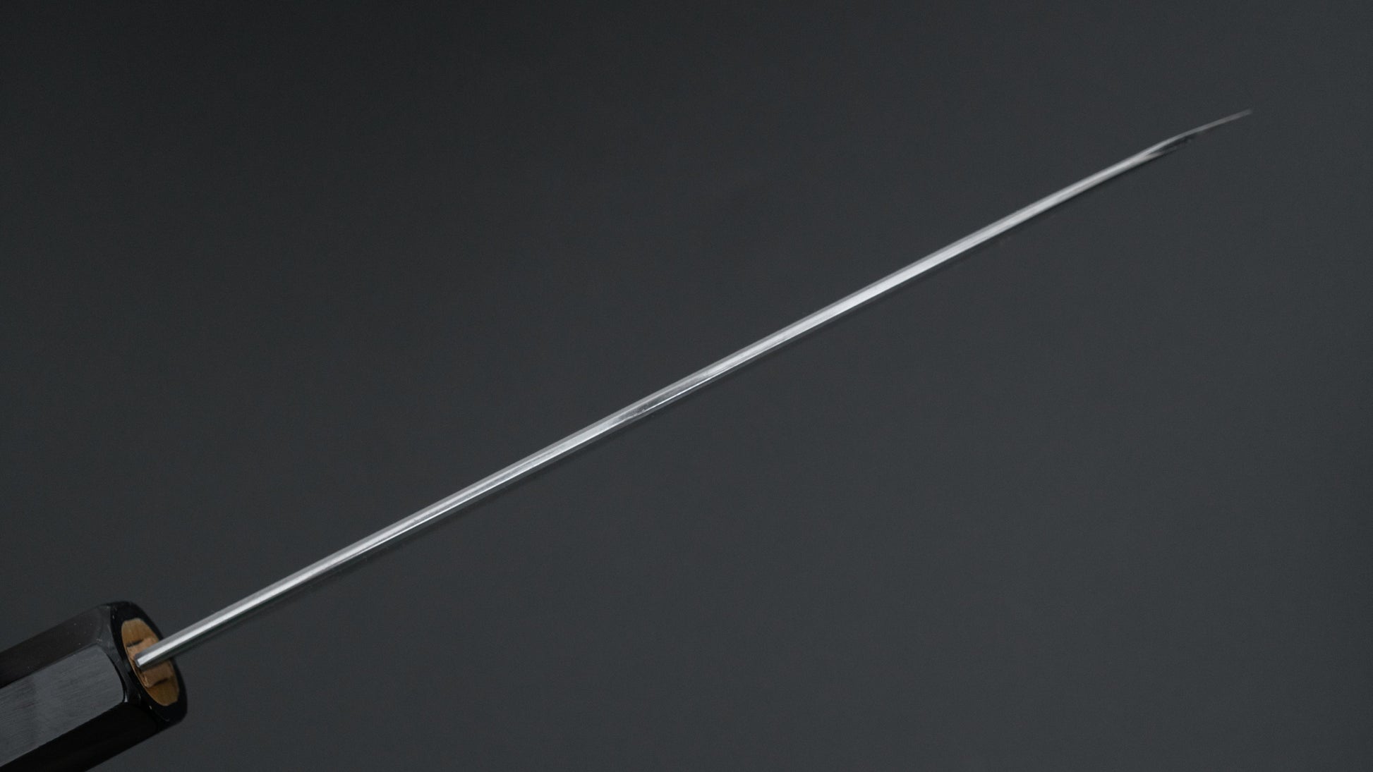 This is a carbon steel knife. Carbon steel is a non-stainless steel that lacks sufficient chromium and/or nickel to protect it from oxidation. As a result, it reacts to moisture and oxygen. While this may sound like a downside, it’s actually a key feature. Carbon steel forms a unique patina over time, is easy to sharpen, and offers excellent edge retention.
