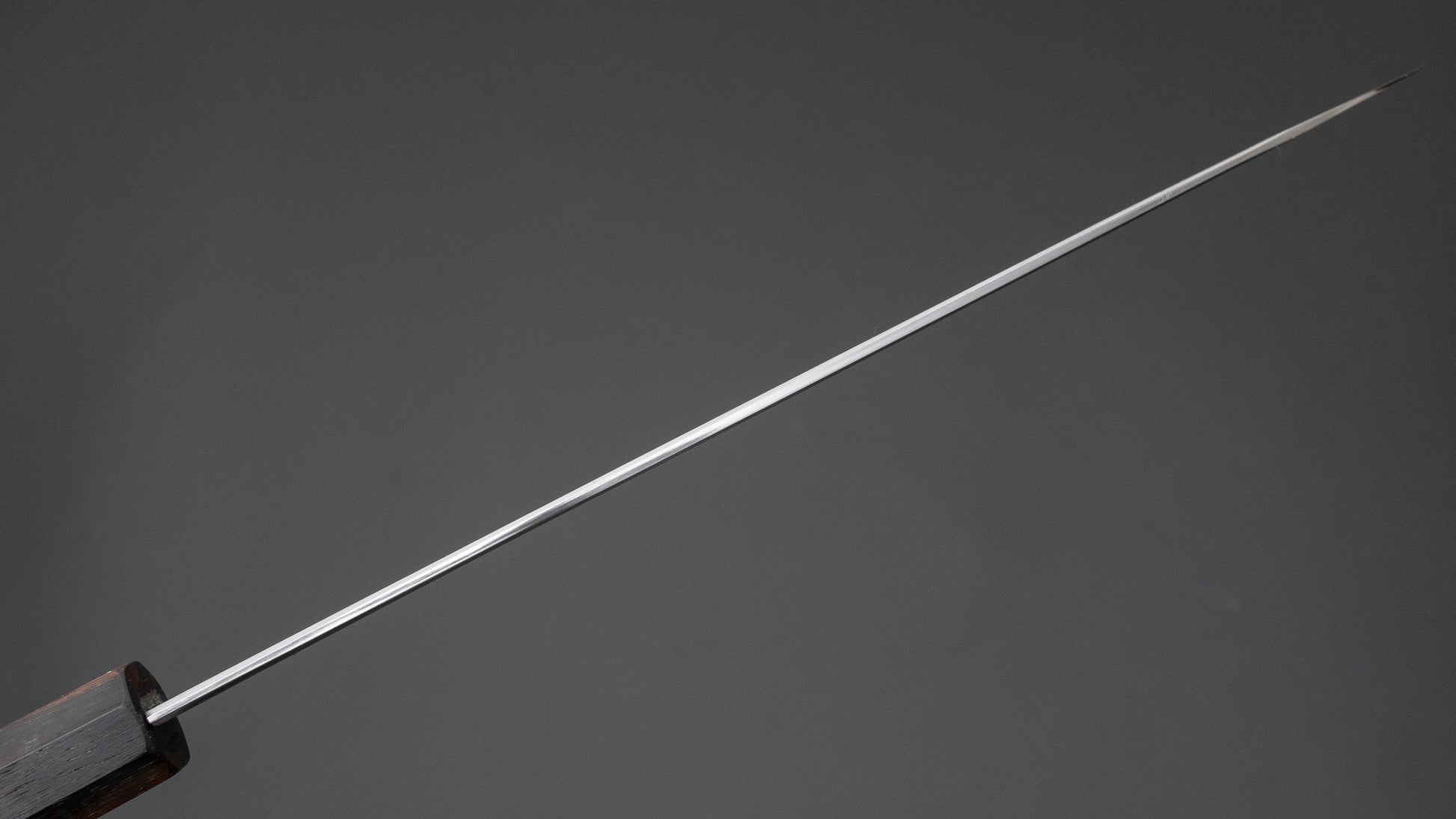 Next to high end double bevels knives the Togashi family has been making exceptional single-bevel knives for decades. All Hitohira Togashi single bevel blades are characterized by, of course great steel quality, crisp and consistent ura and bevel grinds and a very fine polish on the bevel really adding to the cutting performance. All have been sharpened by Kenya Togashi under the same roof which is a rarity in Sakai where usually forgery and sharpeners are two different companies. Like most work from this workshop these belong in the high quality assortment we carry and it is always a treat to receive these remarkable single bevel knives.