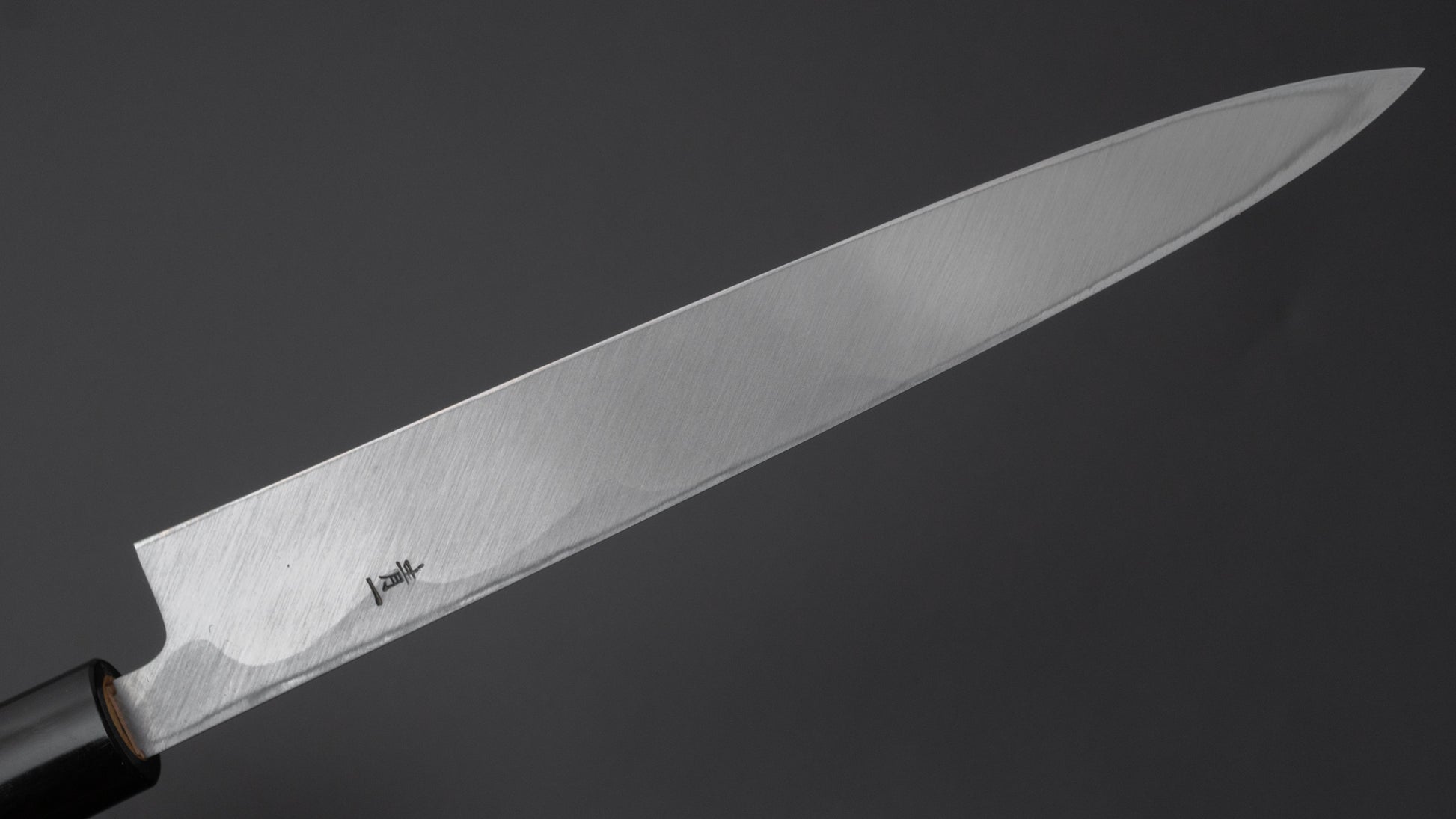 The traditional Japanese slicer. The king of knives and ofter referred to as ’Sushi knife’ it is used for slicing boneless protein. More specific and less versatile compared to the Sujihiki, the performance of the properly sharpened Yanagiba will yield much higher quality results due to their geometry and sharpness. Characteristics in steel are pronounced in single bevel knives and different sharpeners make for much variety.