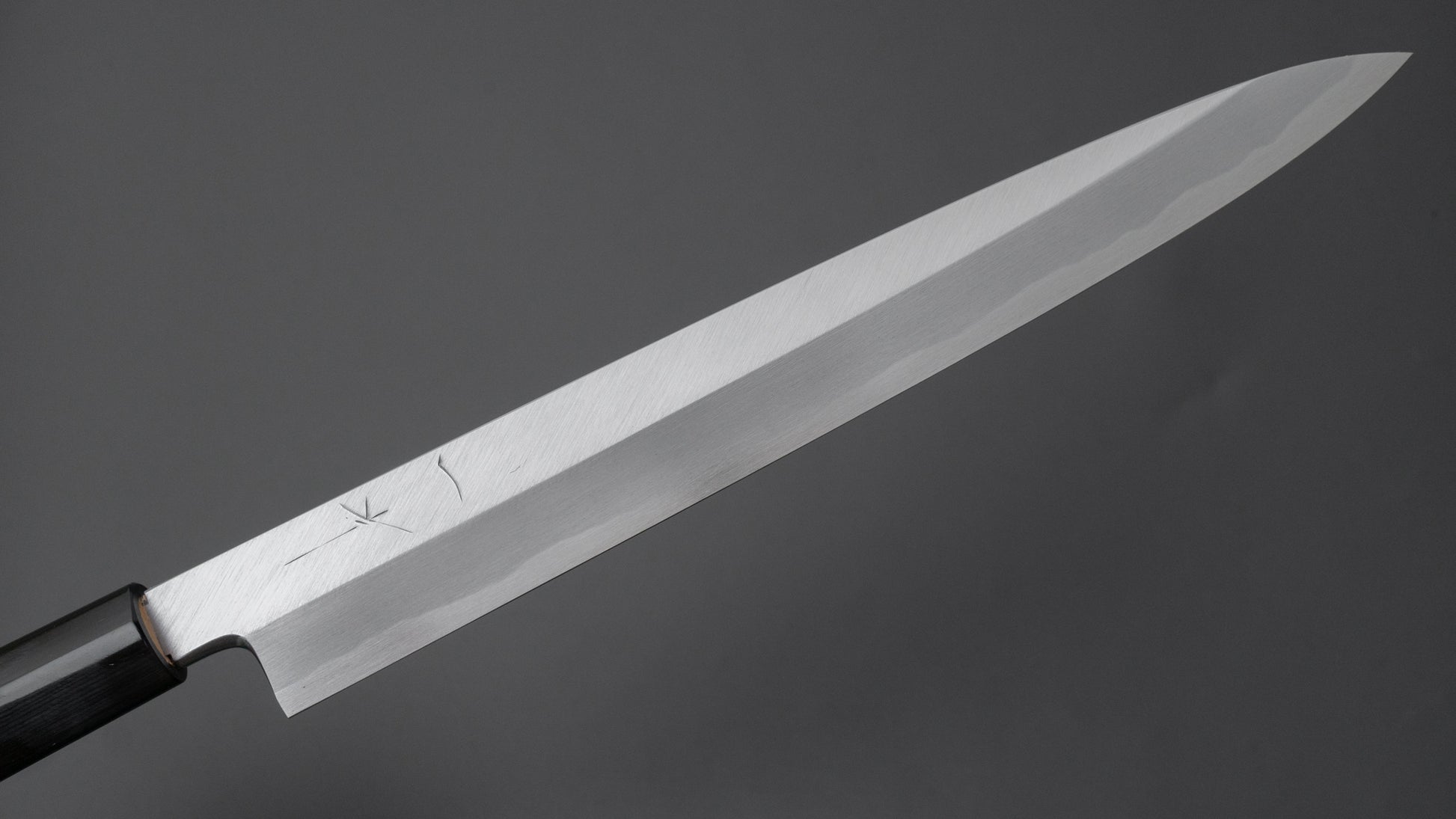 The traditional Japanese slicer. The king of knives and ofter referred to as ’Sushi knife’ it is used for slicing boneless protein. More specific and less versatile compared to the Sujihiki, the performance of the properly sharpened Yanagiba will yield much higher quality results due to their geometry and sharpness. Characteristics in steel are pronounced in single bevel knives and different sharpeners make for much variety.