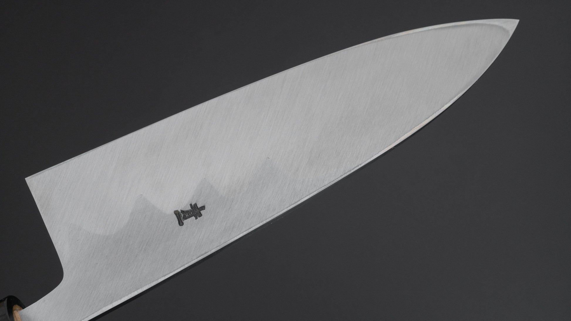 This is a carbon steel knife. Carbon steel is a non-stainless steel that lacks sufficient chromium and/or nickel to protect it from oxidation. As a result, it reacts to moisture and oxygen. While this may sound like a downside, it’s actually a key feature. Carbon steel forms a unique patina over time, is easy to sharpen, and offers excellent edge retention.