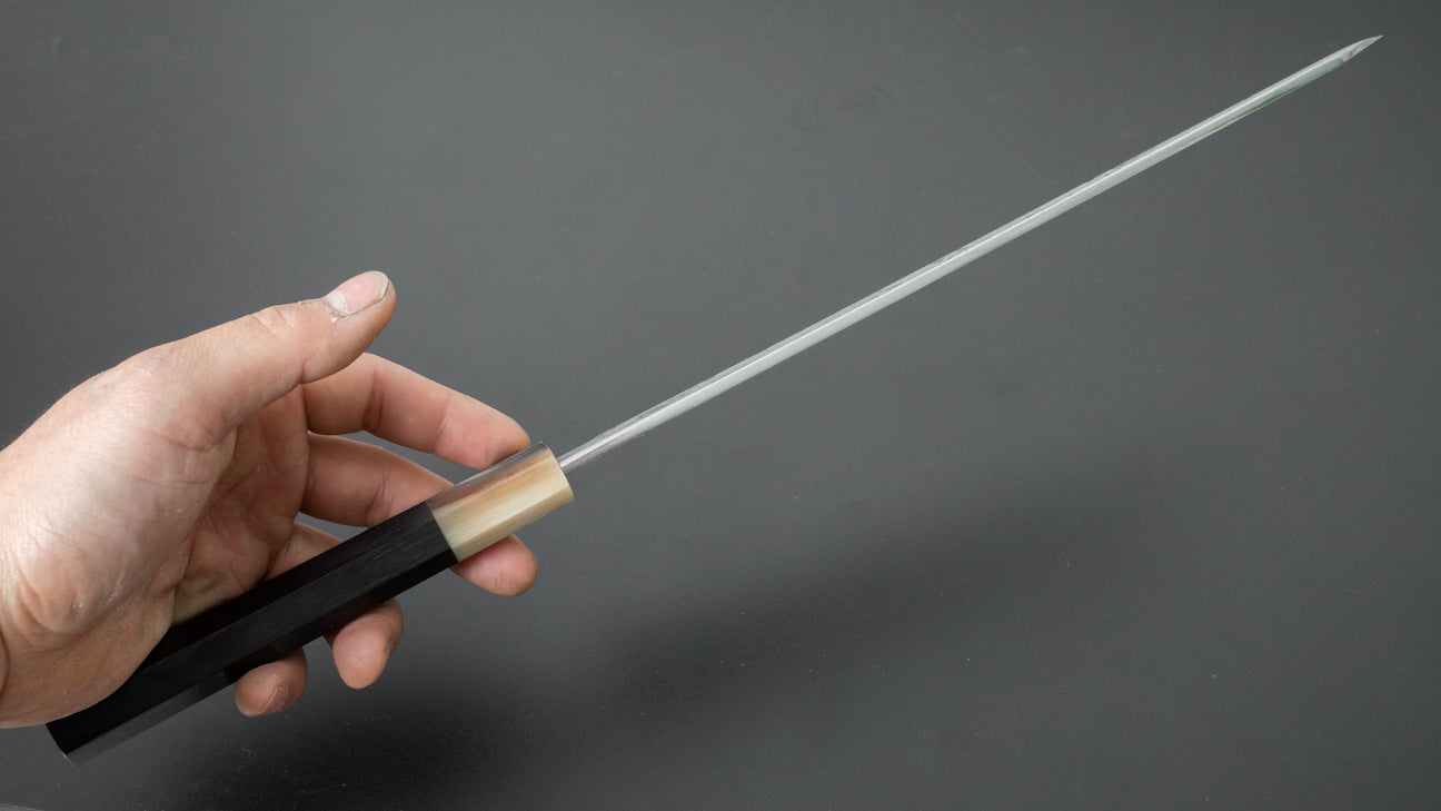 The Yanagiba is the traditional Japanese slicer, often referred to as the “sushi knife.” It’s built for slicing boneless proteins with high precision. While it’s a bit more specialised and less versatile than a Sujihiki, a well-sharpened Yanagiba delivers outstanding performance thanks to its unique geometry and razor-sharp edge.