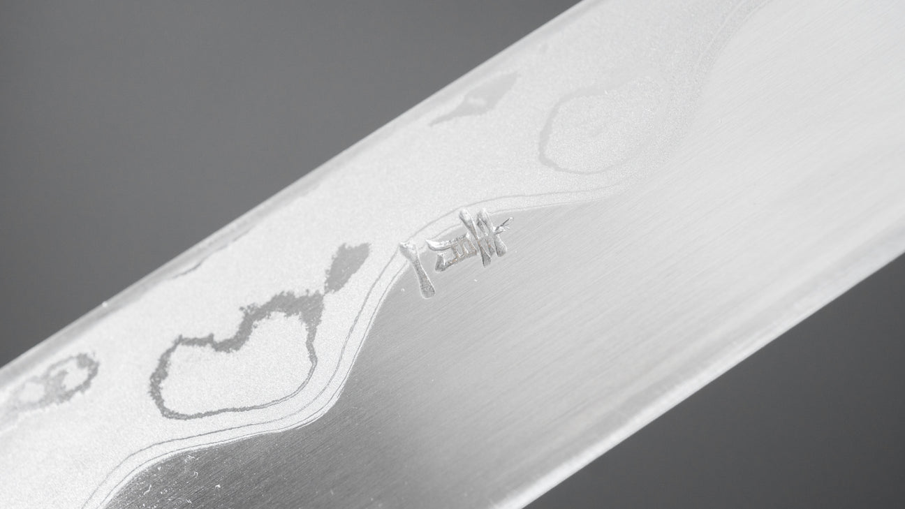 This is a carbon steel knife. Carbon steel is a non-stainless steel that lacks sufficient chromium and/or nickel to protect it from oxidation. As a result, it reacts to moisture and oxygen. While this may sound like a downside, it’s actually a key feature. Carbon steel forms a unique patina over time, is easy to sharpen, and offers excellent edge retention.