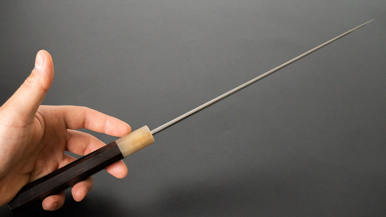 The Yanagiba is the traditional Japanese slicer, often referred to as the “sushi knife.” It’s built for slicing boneless proteins with high precision. While it’s a bit more specialised and less versatile than a Sujihiki, a well-sharpened Yanagiba delivers outstanding performance thanks to its unique geometry and razor-sharp edge.