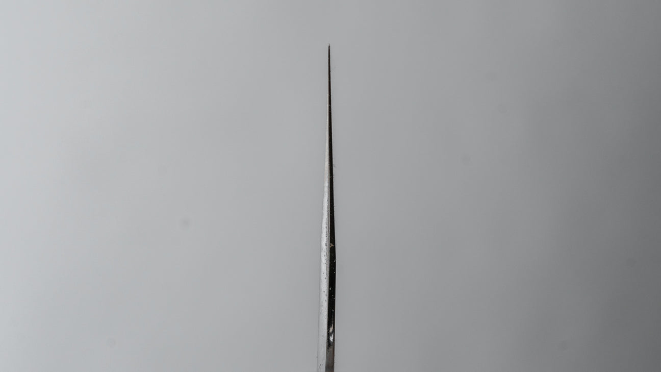Master Kenji Togashi is one of the most celebrated and distiguisted blacksmith from Sakai. Not only a “Dentokogeshi” (certified traditional craftsman) but also awarded with a medal from the emperor for his accomplishments and service. One of the, if not the, most honourable and prestigious decorations in Japan. To be awarded such a prestigious titles is proof of vast knowledge and skill. He is amongst the very few remaining blacksmiths in Japan with the skillset to forge water-quenched Honyaki blades. A true master of traditional techniques. Togashi made knives are characterised by their durability and hardness while still easy to sharpen. Not only the steel quality but also their in-house sharpening is praiseworthy. In charge of the in-house sharpening is Kenya Togashi, the third son of Togashi San, and from him we see some of the most true and consistent single and double-bevel sharpening we've come across. All their knives really feel like they've been made with the intention to last for years.