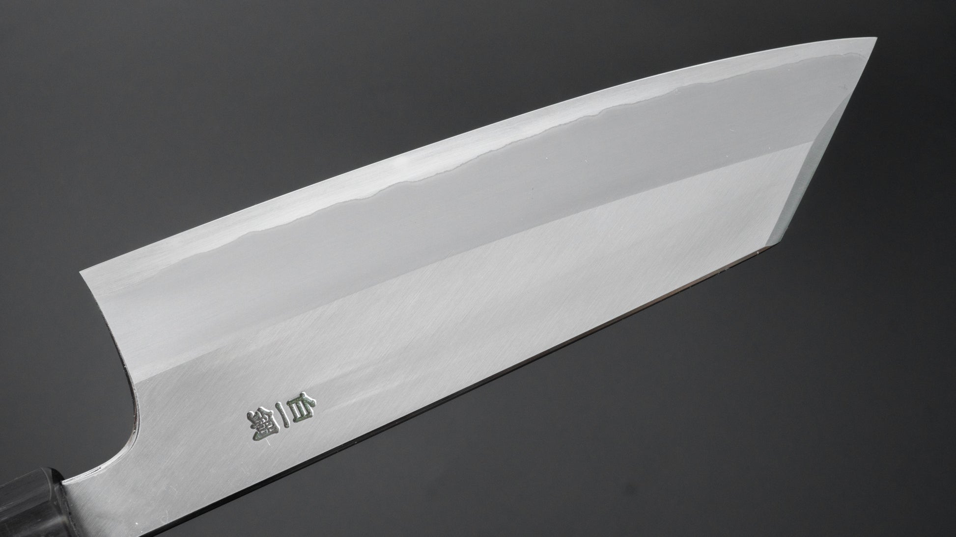 This is a carbon steel knife with a soft stainless steel cladding. Many Japanese knives are constructed with a 3-layer design known as “San Mai,” where a hard, high-quality steel core is sandwiched between two layers of softer steel or iron. In this case, the core is made of carbon steel, while the outer layers, or cladding, are composed of stainless steel. This construction combines the benefits of a carbon steel edge, such as easy sharpening and excellent edge retention, with the added corrosion resistance of stainless steel for the rest of the blade.