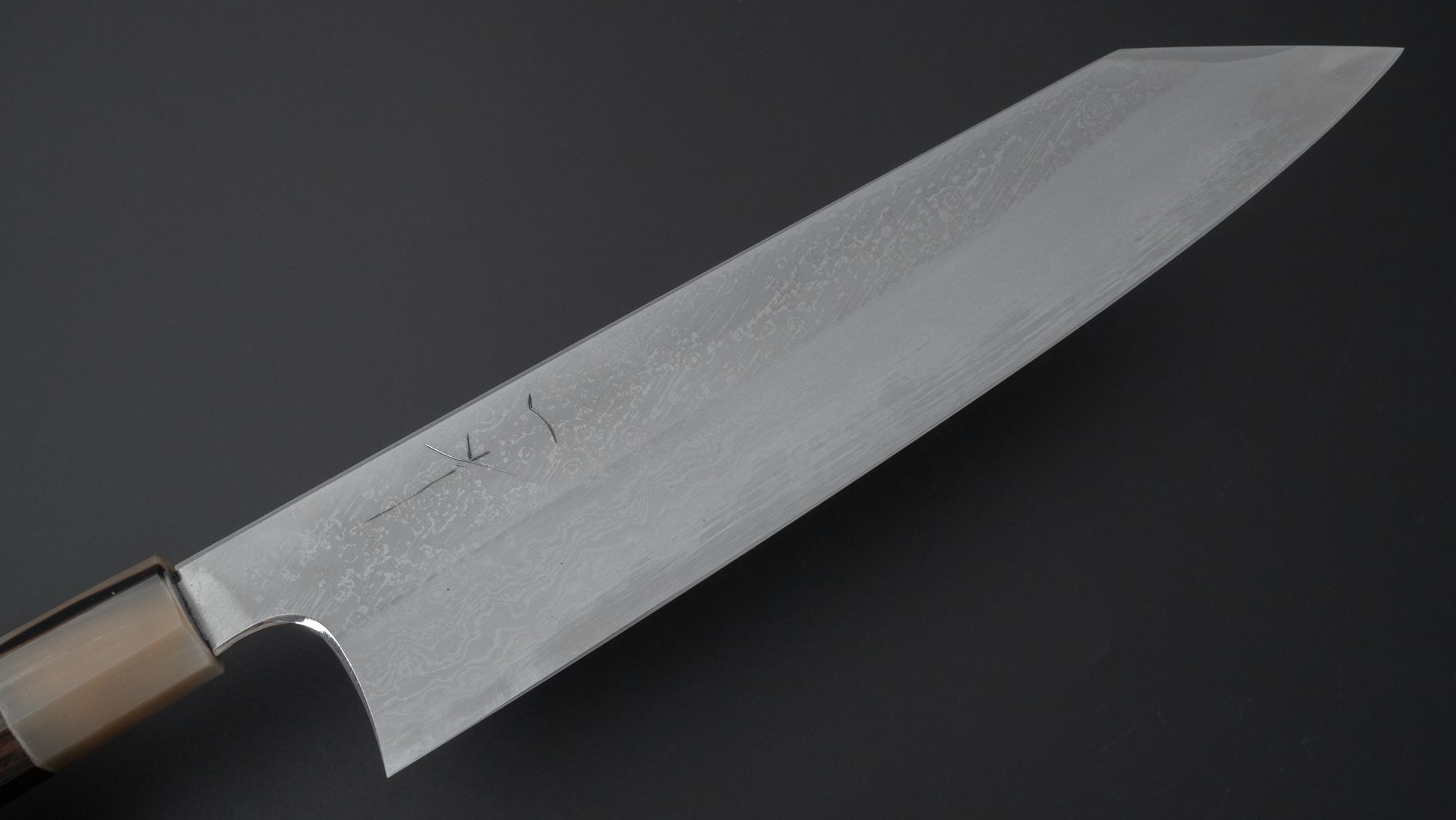 Hitohira Togashi White #1 Damascus Wide-Bevel Kiritsuke Gyuto 24cm Ebony Handle