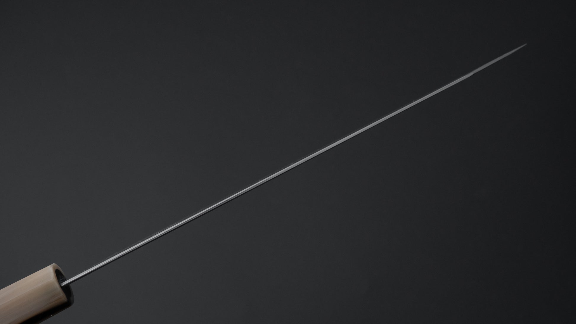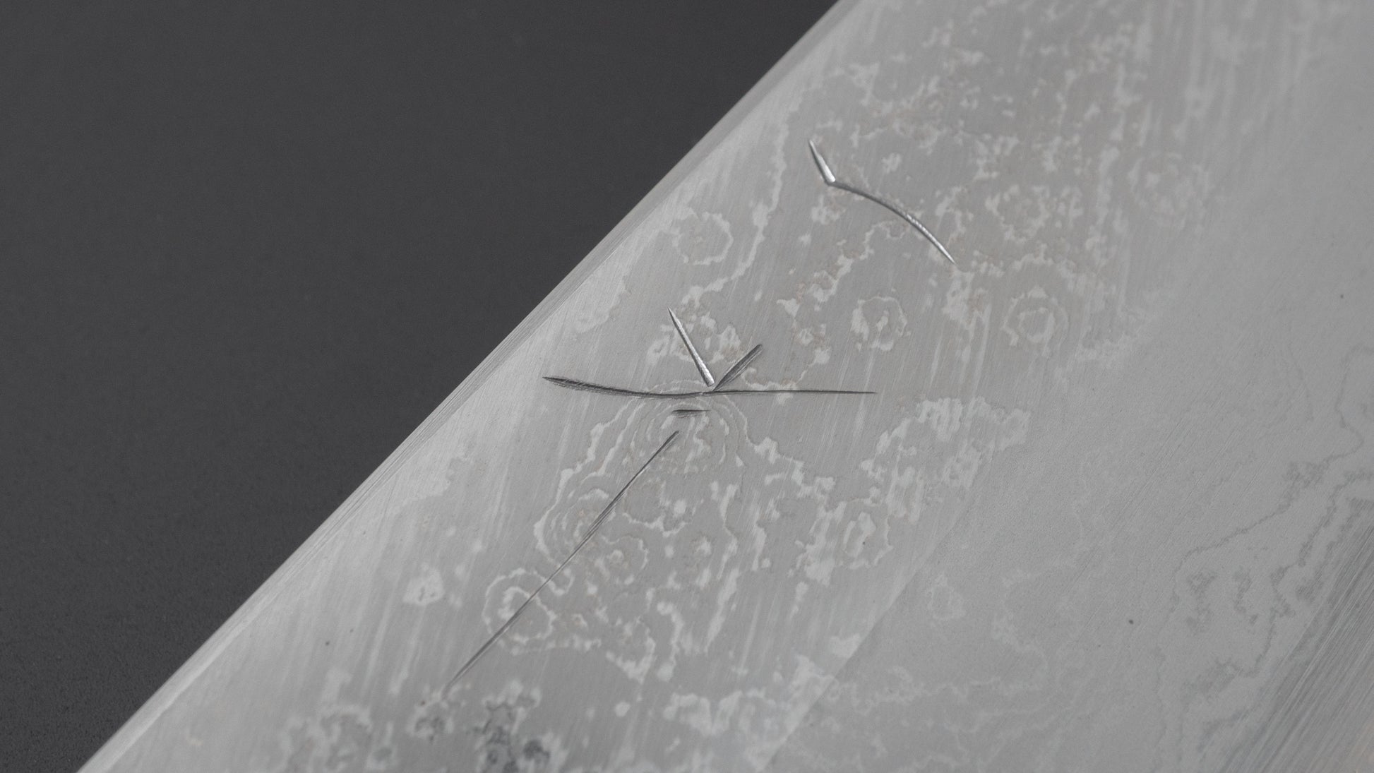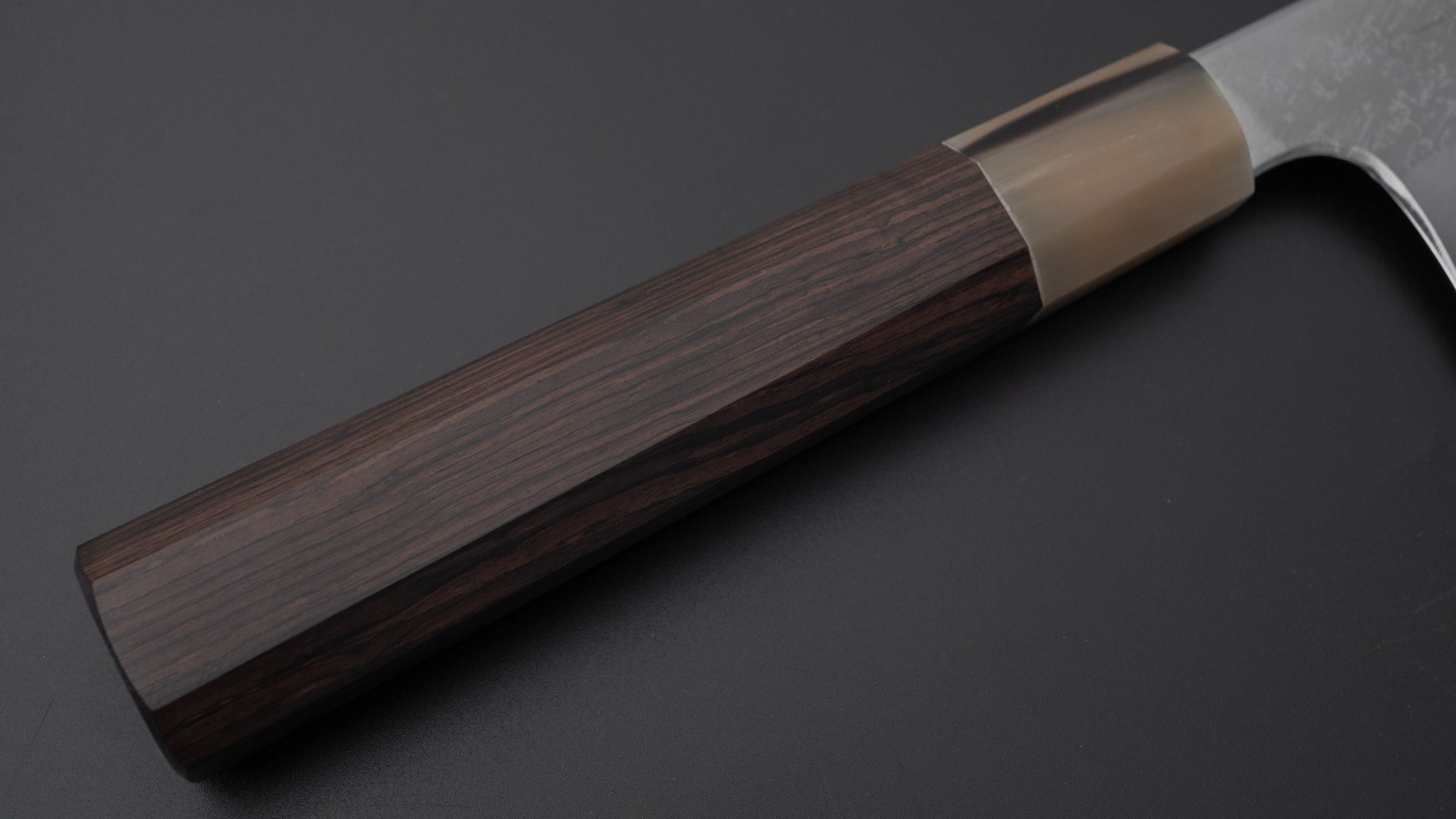 This is a carbon steel knife. Carbon steel is a non-stainless steel that lacks sufficient chromium and/or nickel to protect it from oxidation. As a result, it reacts to moisture and oxygen. While this may sound like a downside, it’s actually a key feature. Carbon steel forms a unique patina over time, is easy to sharpen, and offers excellent edge retention.