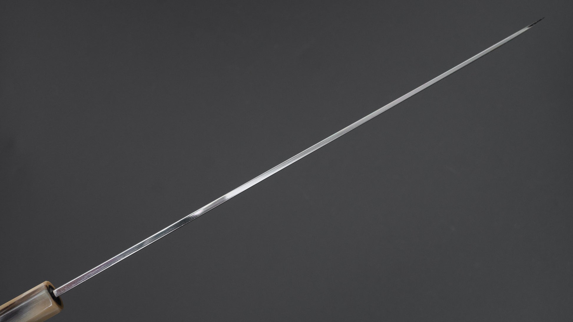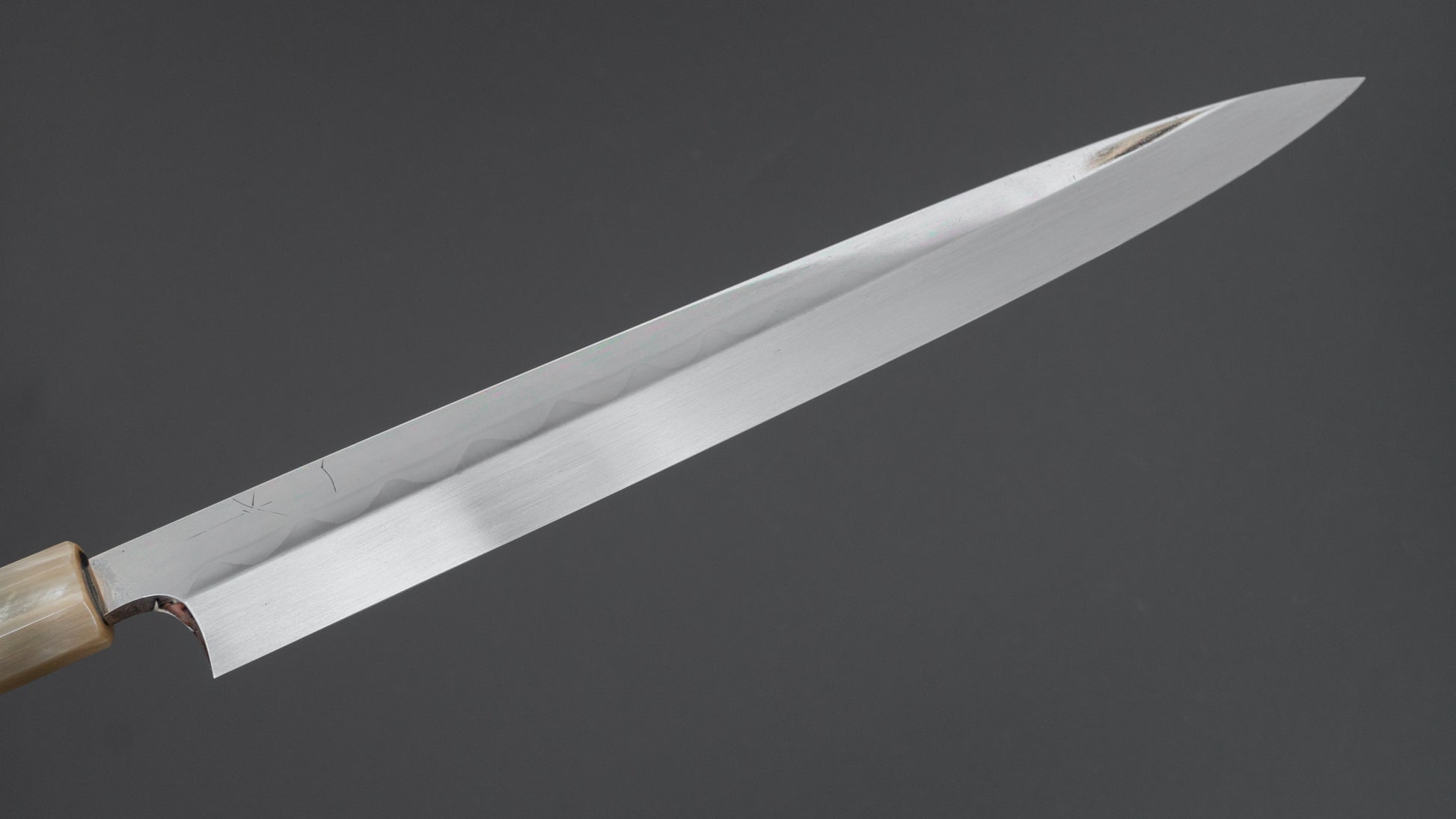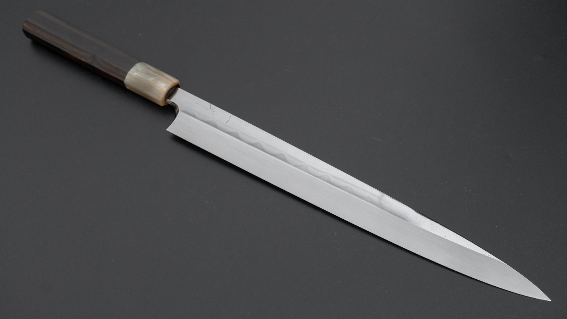 The traditional Japanese slicer. The king of knives and ofter referred to as ’Sushi knife’ it is used for slicing boneless protein. More specific and less versatile compared to the Sujihiki, the performance of the properly sharpened Yanagiba will yield much higher quality results due to their geometry and sharpness. Characteristics in steel are pronounced in single bevel knives and different sharpeners make for much variety.