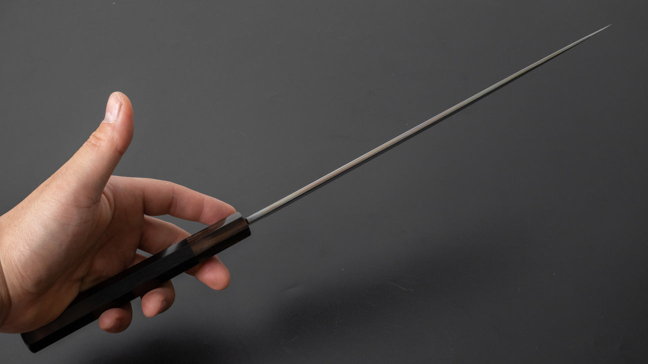The Yanagiba is the traditional Japanese slicer, often referred to as the “sushi knife.” It’s built for slicing boneless proteins with high precision. While it’s a bit more specialised and less versatile than a Sujihiki, a well-sharpened Yanagiba delivers outstanding performance thanks to its unique geometry and razor-sharp edge.