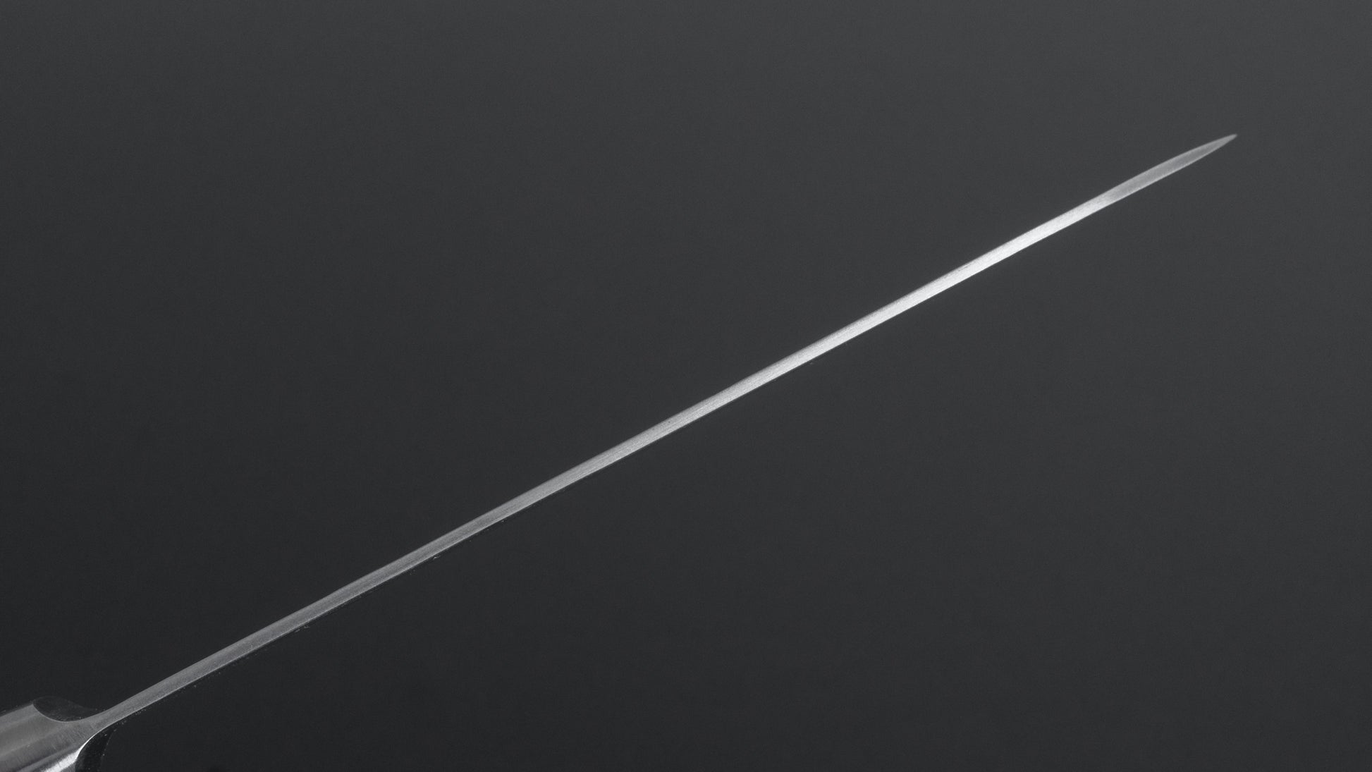 The Santoku is every bit as versatile as a Gyuto, but it’s more at home in everyday cooking. Probably the most used to-go knife at home. It’s easy to handle, super nimble, and great for just about any kitchen task.