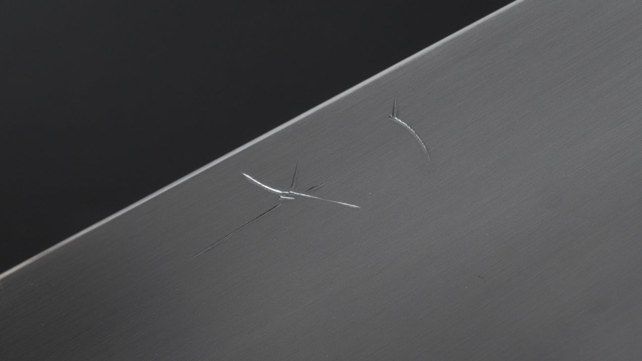 This is a carbon steel knife. Carbon steel is a non-stainless steel that lacks sufficient chromium and/or nickel to protect it from oxidation. As a result, it reacts to moisture and oxygen. While this may sound like a downside, it’s actually a key feature. Carbon steel forms a unique patina over time, is easy to sharpen, and offers excellent edge retention.