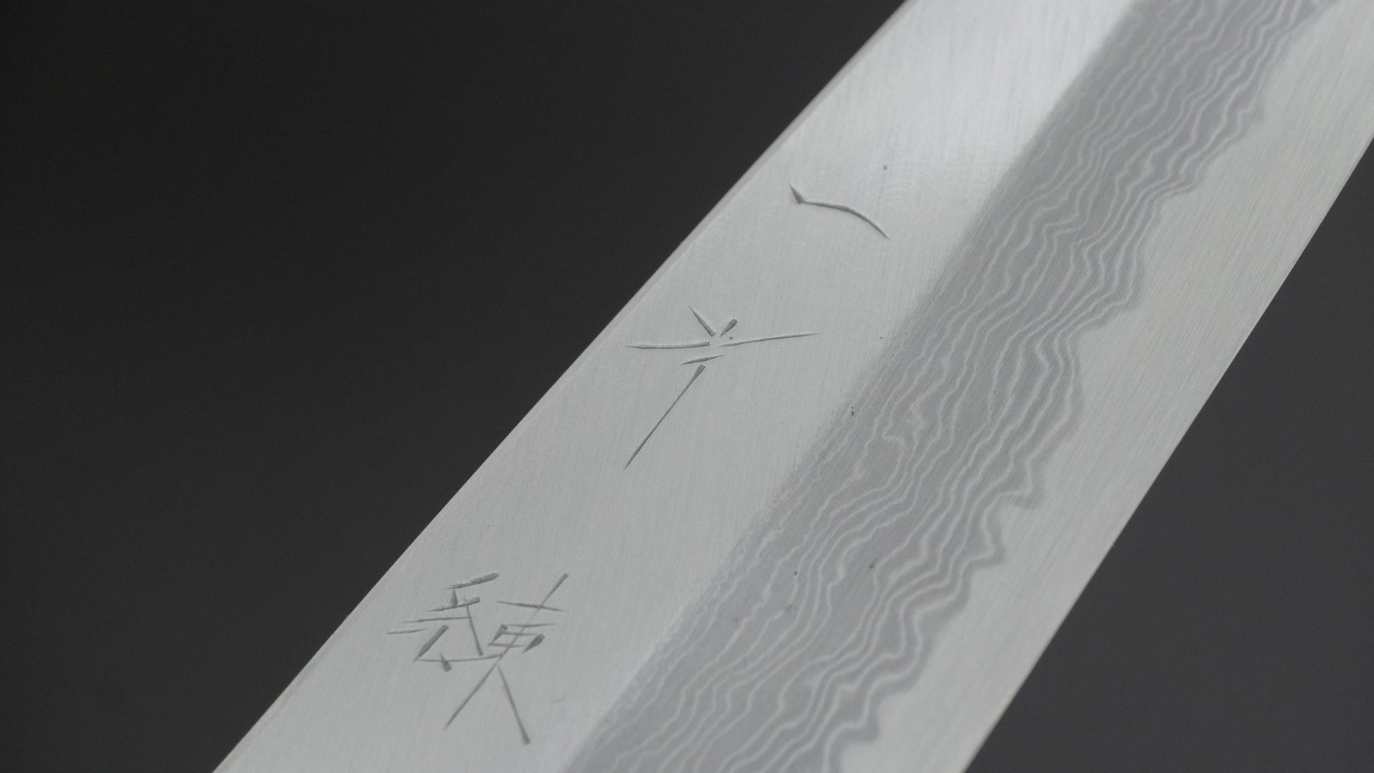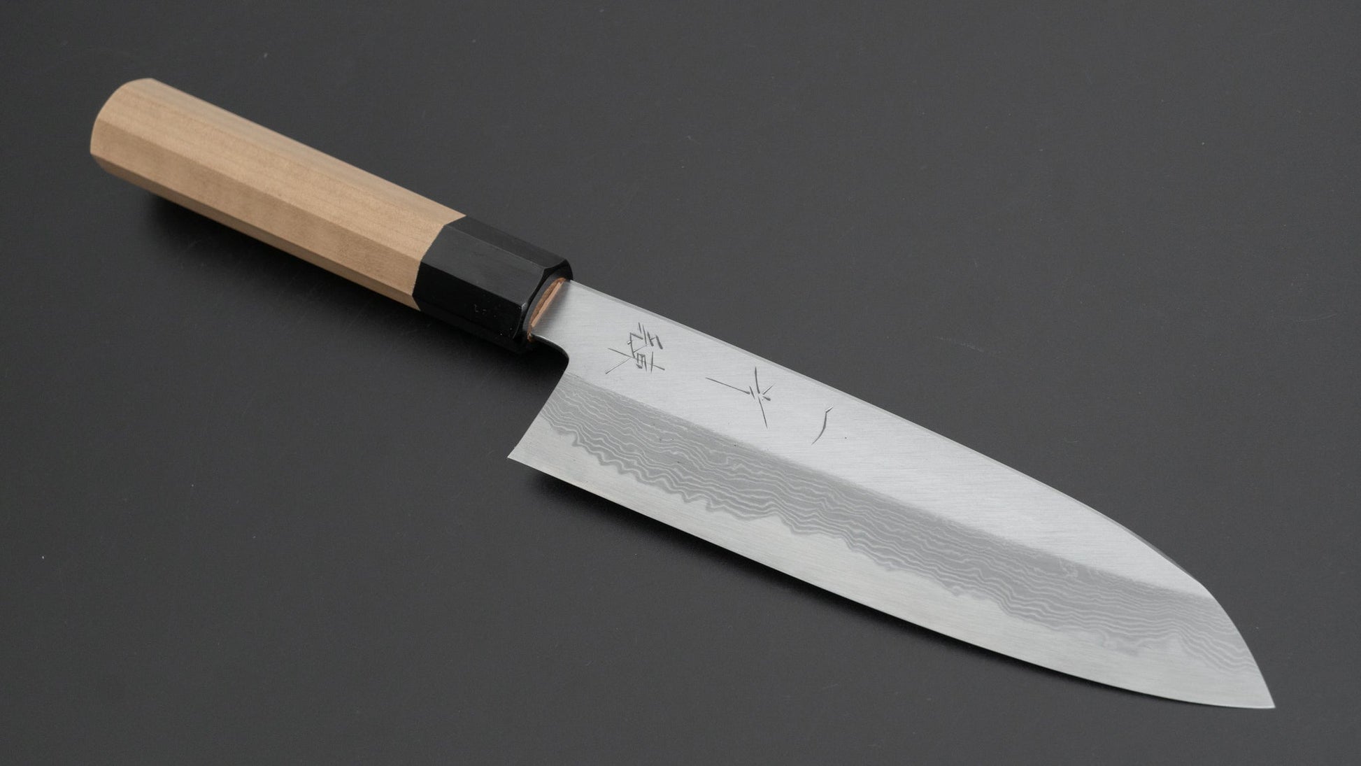 Hitohira Gorobei Ren White #2 Damascus Santoku Ho Wood Handle