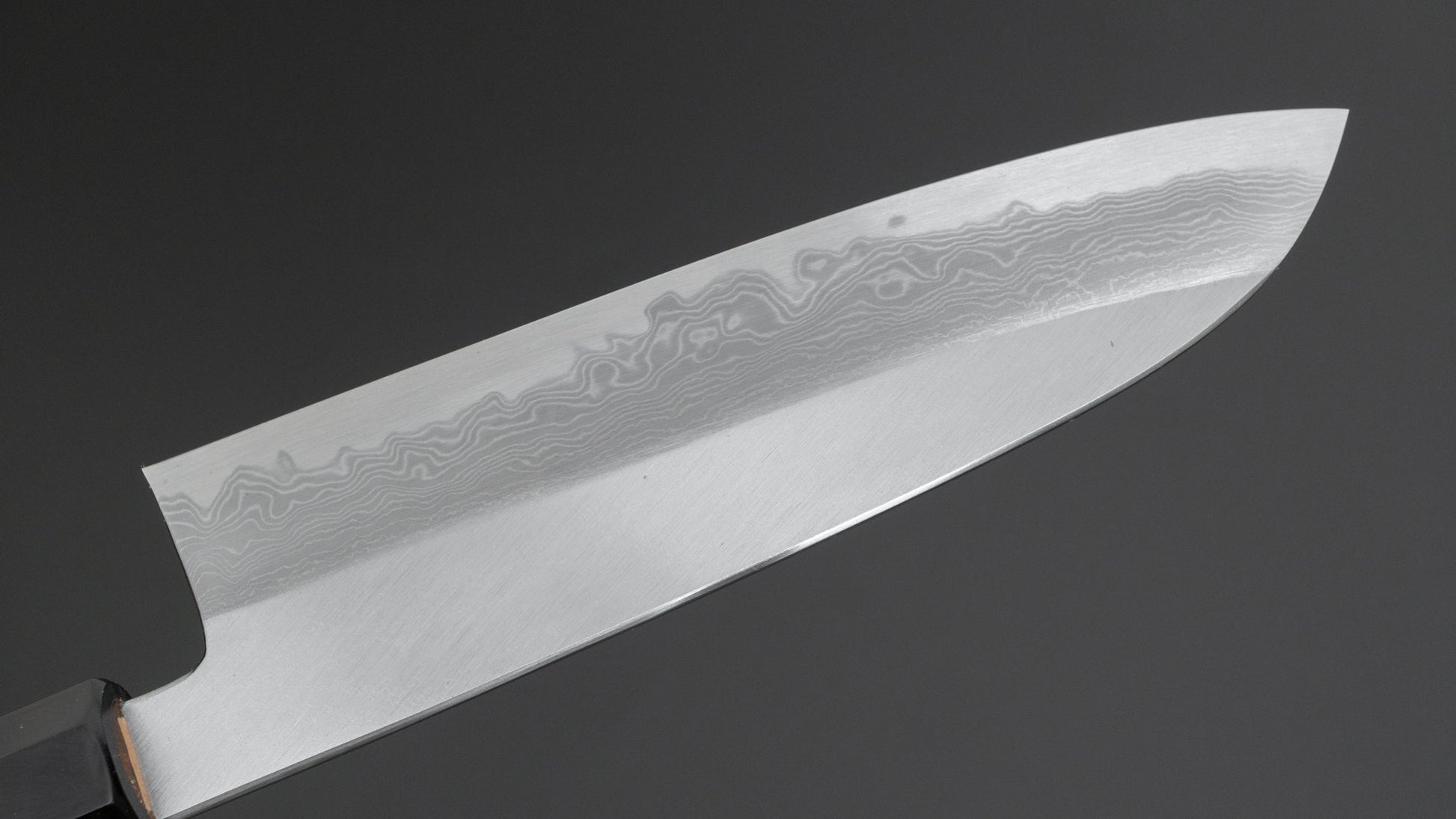 This is a carbon steel knife. Carbon steel is a non-stainless steel that lacks sufficient chromium and/or nickel to protect it from oxidation. As a result, it reacts to moisture and oxygen. While this may sound like a downside, it’s actually a key feature. Carbon steel forms a unique patina over time, is easy to sharpen, and offers excellent edge retention.