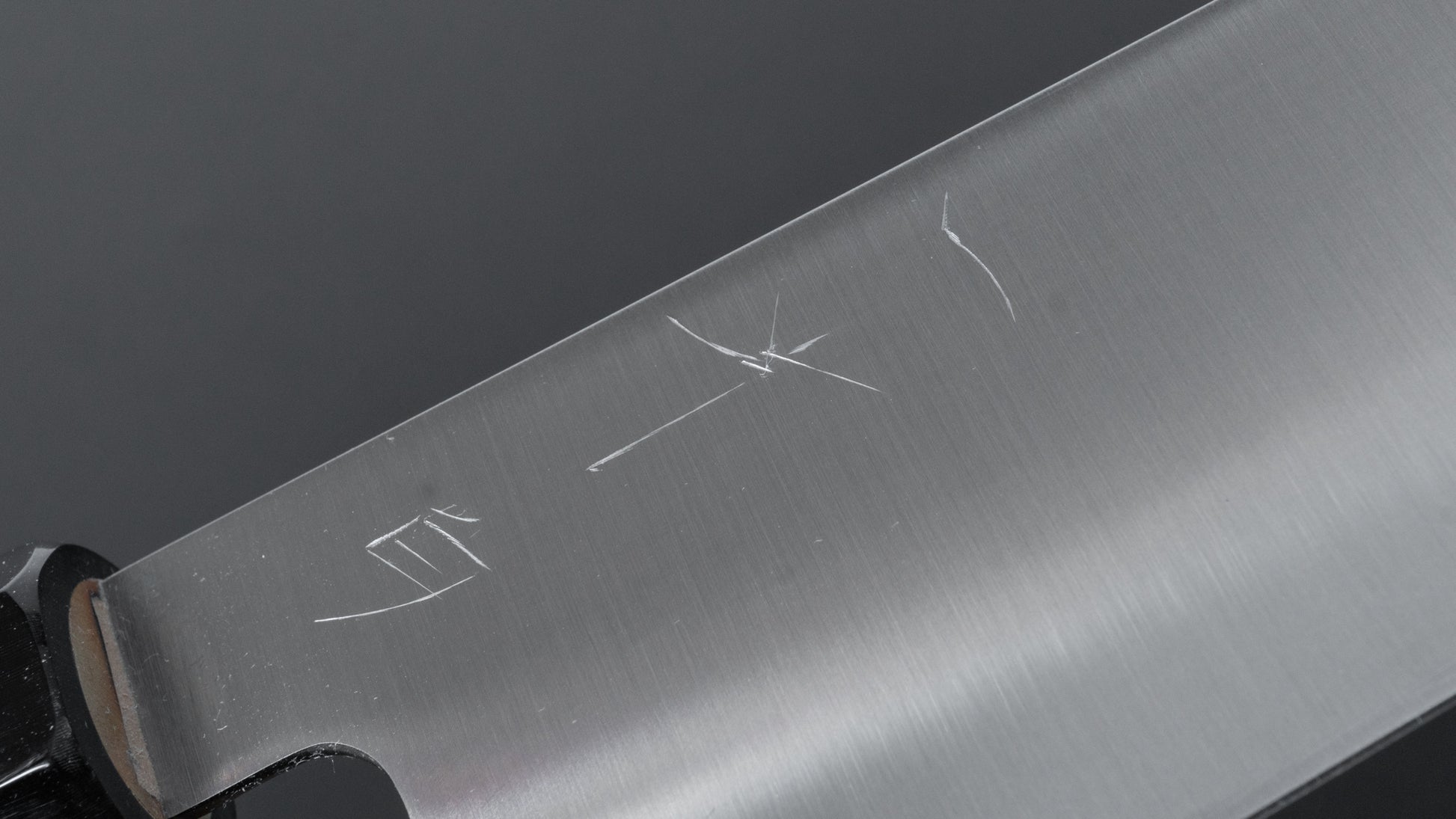This is a carbon steel knife. Carbon steel is a non-stainless steel that lacks sufficient chromium and/or nickel to protect it from oxidation. As a result, it reacts to moisture and oxygen. While this may sound like a downside, it’s actually a key feature. Carbon steel forms a unique patina over time, is easy to sharpen, and offers excellent edge retention.