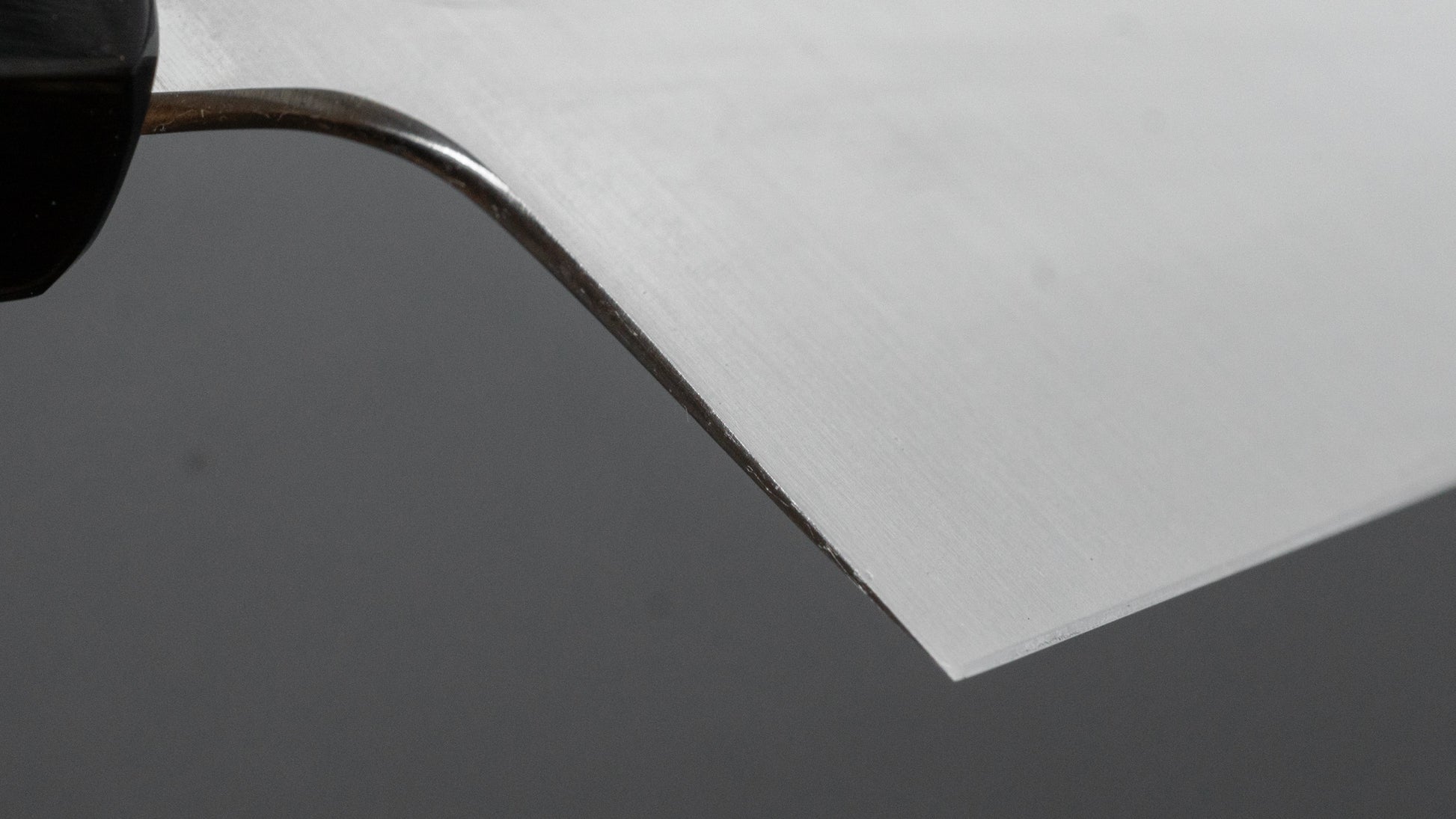 Ashi Hamono, a legendary company based in Sakai. Famed for their mono style and convex grind, Ashi Hamono knives are synonymous with smooth cutting performance. Ashi produces blades from a single piece of steel, known as mono steel knives. It makes for very reliable and strong knives with a very solid feeling. It is true that mono steel knives cannot be hardened to the levels of a San Mai (core-steel w/ cladding construction) knives but Ashi makes up for that with their first-class heat treatment and their superior convex sharpening. Convex sharpening is where the bevels are more rounded instead of flat, minimizing contact between product and blade. This grind, and especially on Ashi level, ensures a smooth cutting performance even when the edge gradually dulls.