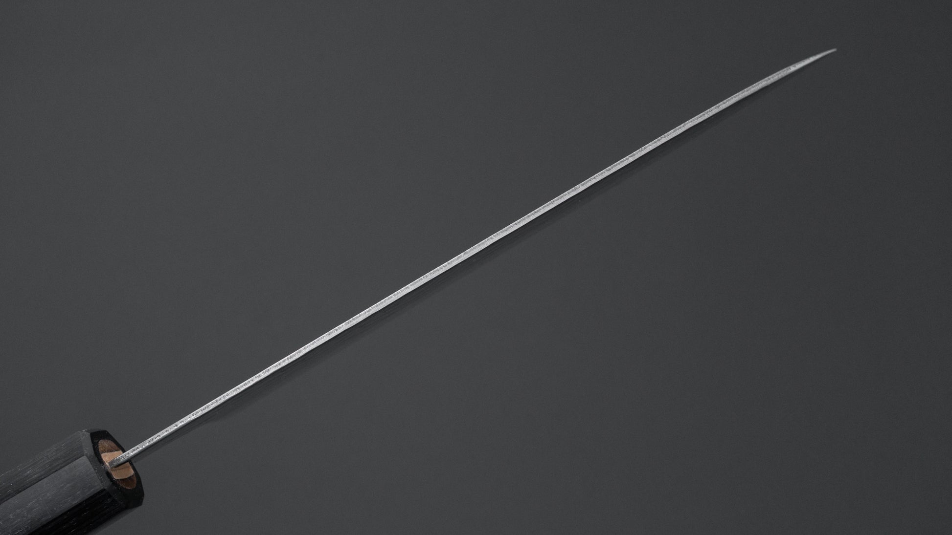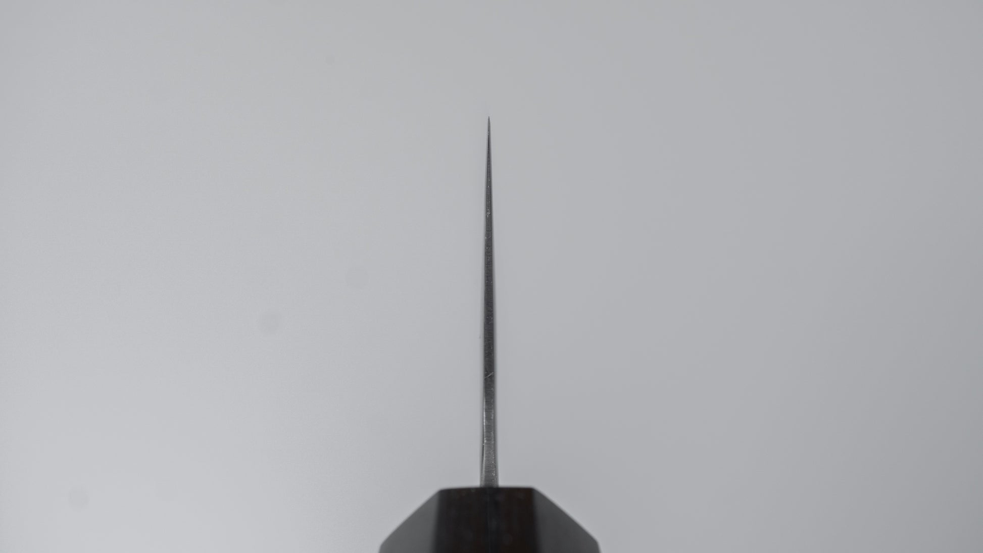 The Santoku is every bit as versatile as a Gyuto, but it’s more at home in everyday cooking. Probably the most used to-go knife at home. It’s easy to handle, super nimble, and great for just about any kitchen task.