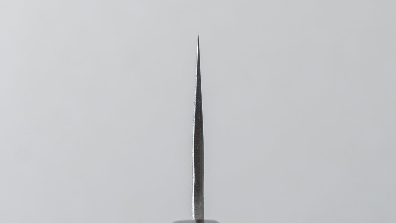 The Santoku is every bit as versatile as a Gyuto, but it’s more at home in everyday cooking. Probably the most used to-go knife at home. It’s easy to handle, super nimble, and great for just about any kitchen task.