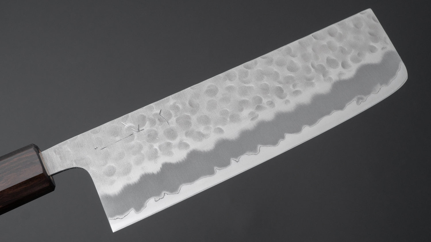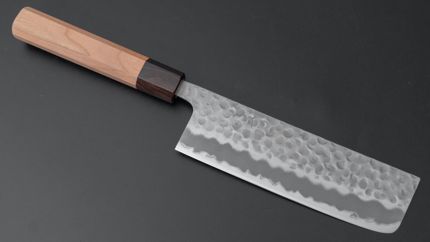 Hitohira Futana White #2 Migaki Tsuchime Nakiri 165mm Cherry Wood Handle