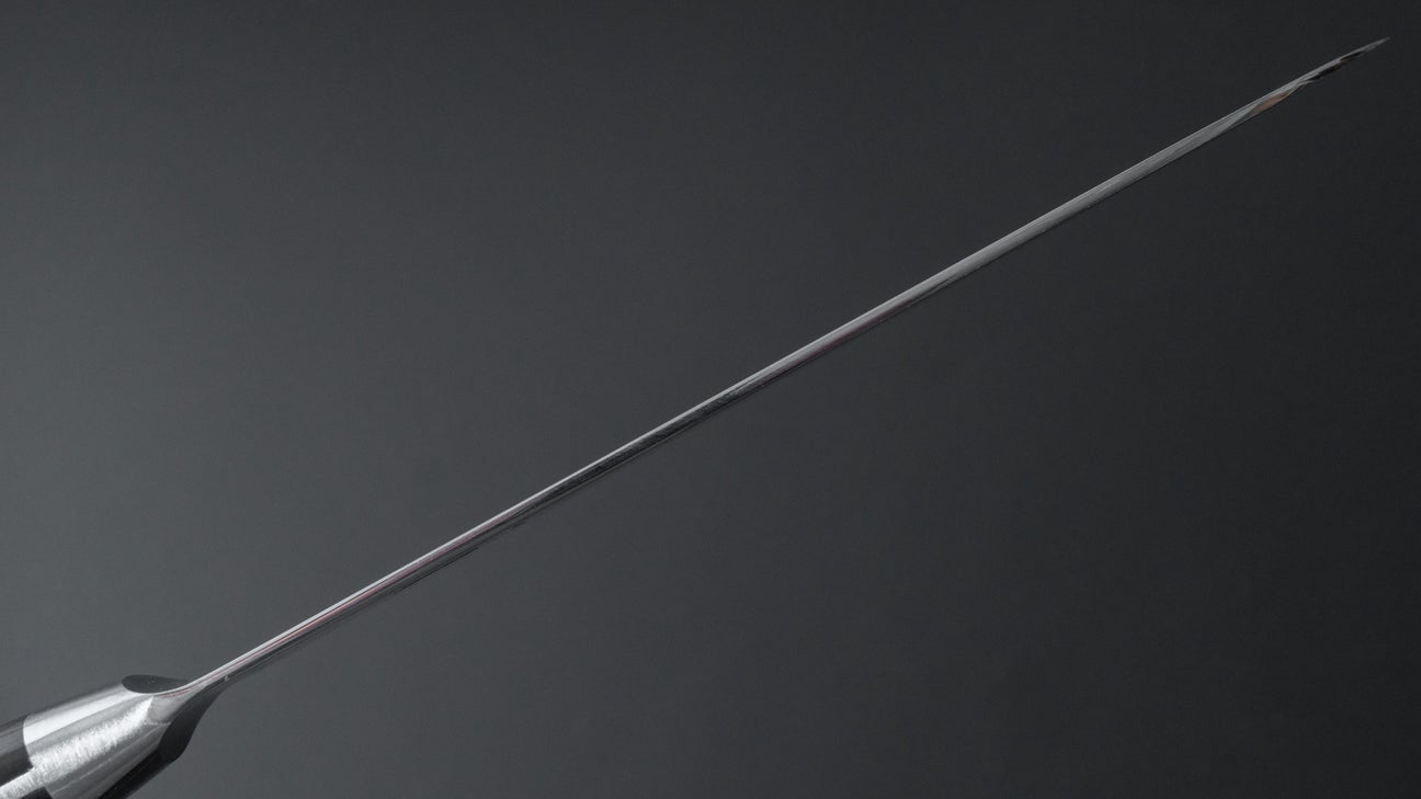 The Santoku is every bit as versatile as a Gyuto, but it’s more at home in everyday cooking. Probably the most used to-go knife at home. It’s easy to handle, super nimble, and great for just about any kitchen task.