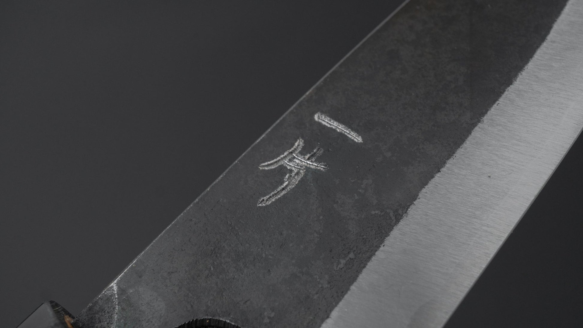 This is a carbon steel knife with a soft stainless steel cladding. Many Japanese knives are constructed with a 3-layer design known as “San Mai,” where a hard, high-quality steel core is sandwiched between two layers of softer steel or iron. In this case, the core is made of carbon steel, while the outer layers, or cladding, are composed of stainless steel. This construction combines the benefits of a carbon steel edge, such as easy sharpening and excellent edge retention, with the added corrosion resistance of stainless steel for the rest of the blade.