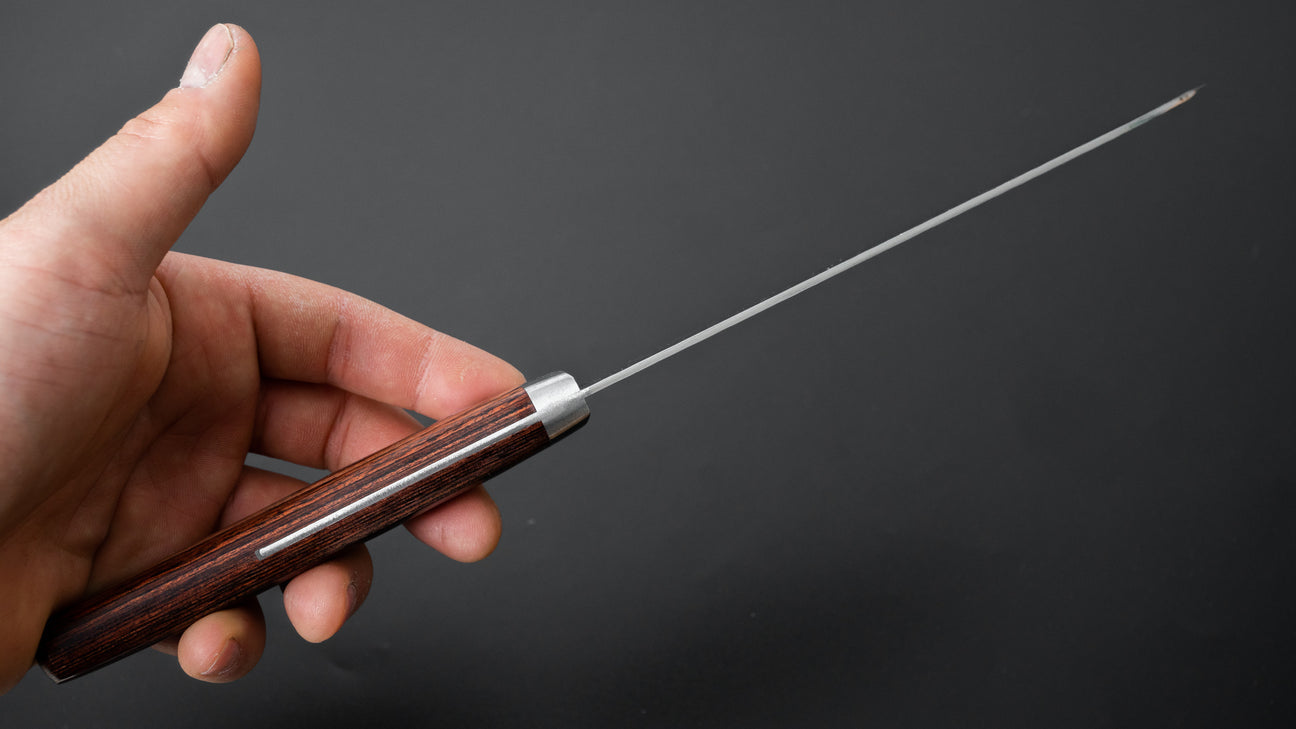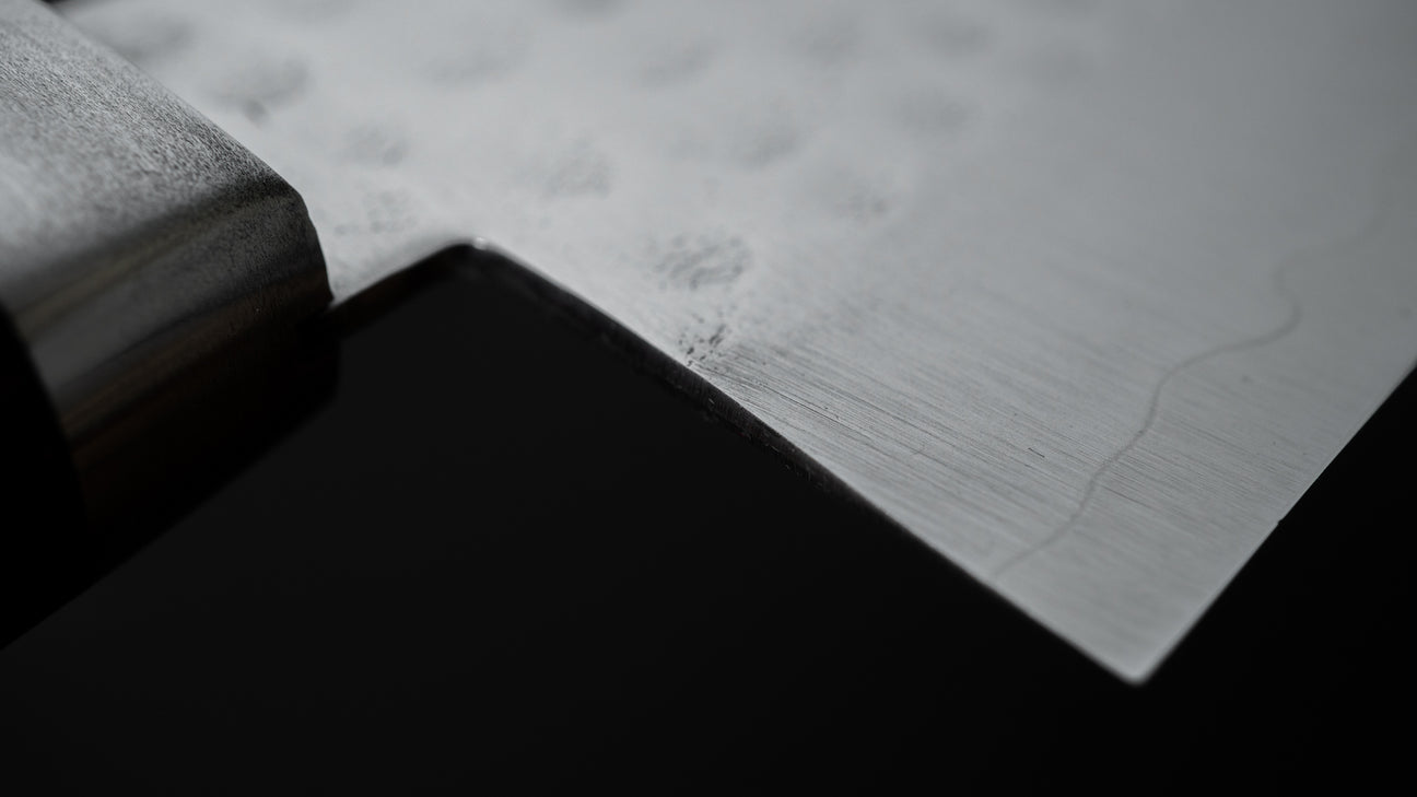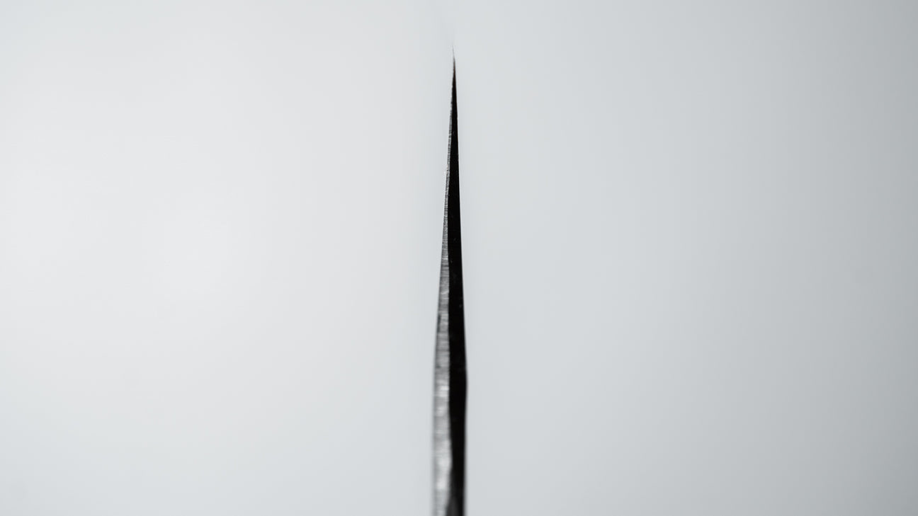 The Santoku is every bit as versatile as a Gyuto, but it’s more at home in everyday cooking. Probably the most used to-go knife at home. It’s easy to handle, super nimble, and great for just about any kitchen task.