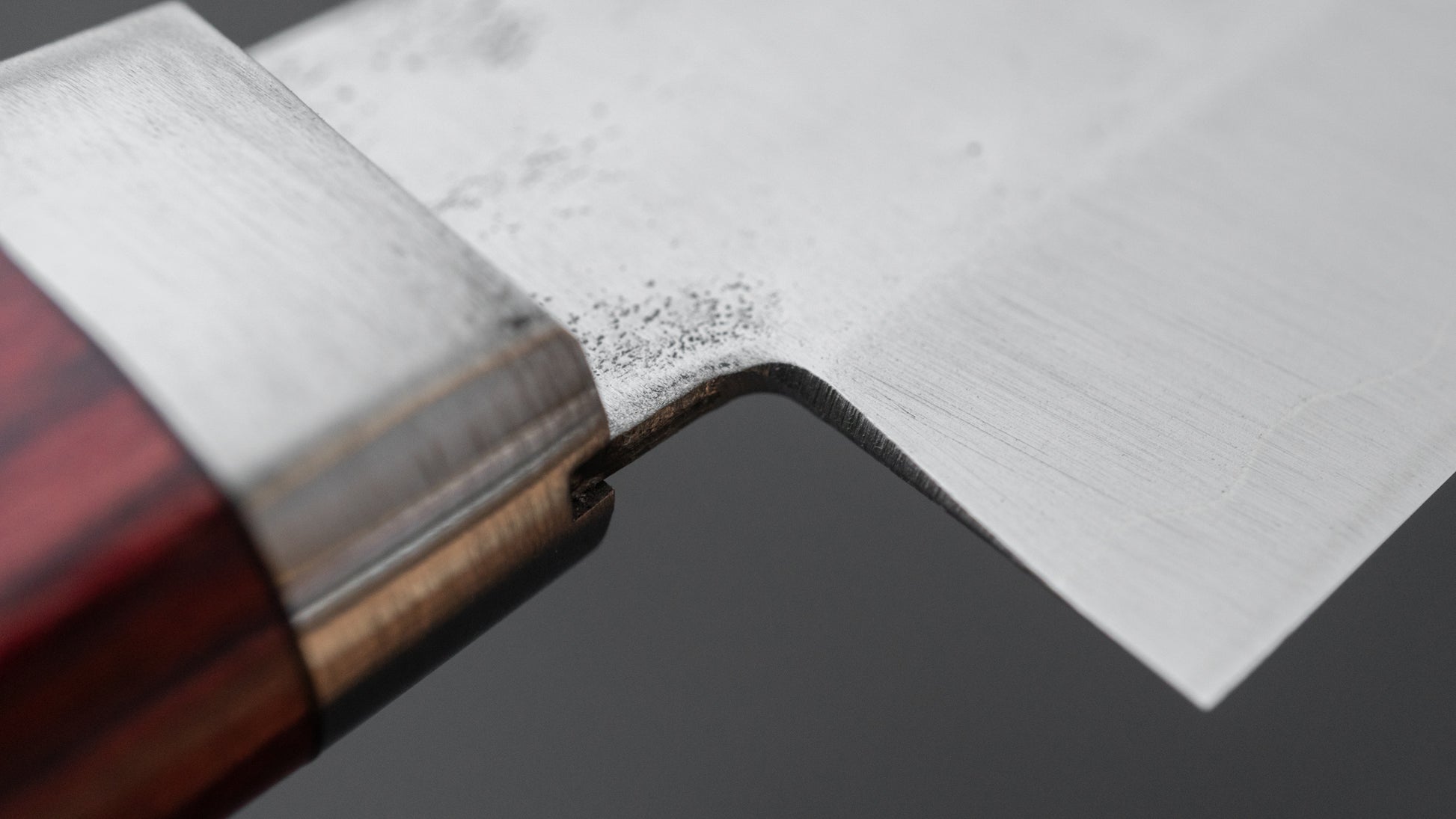 This is a stainless steel knife. Stainless steel gets its name from the inclusion of chromium (10-13%) in the alloy, which forms a protective film that helps prevent rust and corrosion by acting as a barrier between the metal and oxygen. While stainless steel knives are practical, functional, and easier to maintain than carbon steel, they are not completely maintenance-free. With improper care, they can still rust or develop pitting—after all, "stainless" does not mean "stain-free."