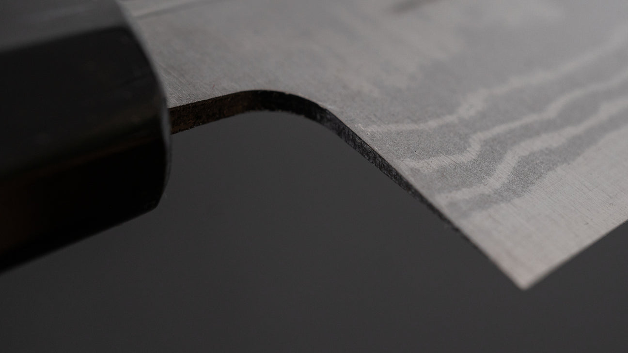 The Santoku is every bit as versatile as a Gyuto, but it’s more at home in everyday cooking. Probably the most used to-go knife at home. It’s easy to handle, super nimble, and great for just about any kitchen task.