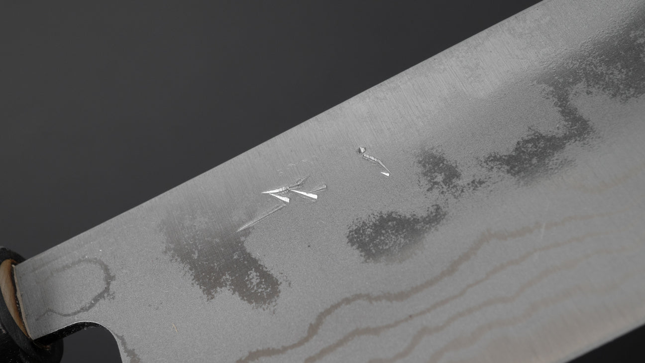This is a carbon steel knife. Carbon steel is a non-stainless steel that lacks sufficient chromium and/or nickel to protect it from oxidation. As a result, it reacts to moisture and oxygen. While this may sound like a downside, it’s actually a key feature. Carbon steel forms a unique patina over time, is easy to sharpen, and offers excellent edge retention.