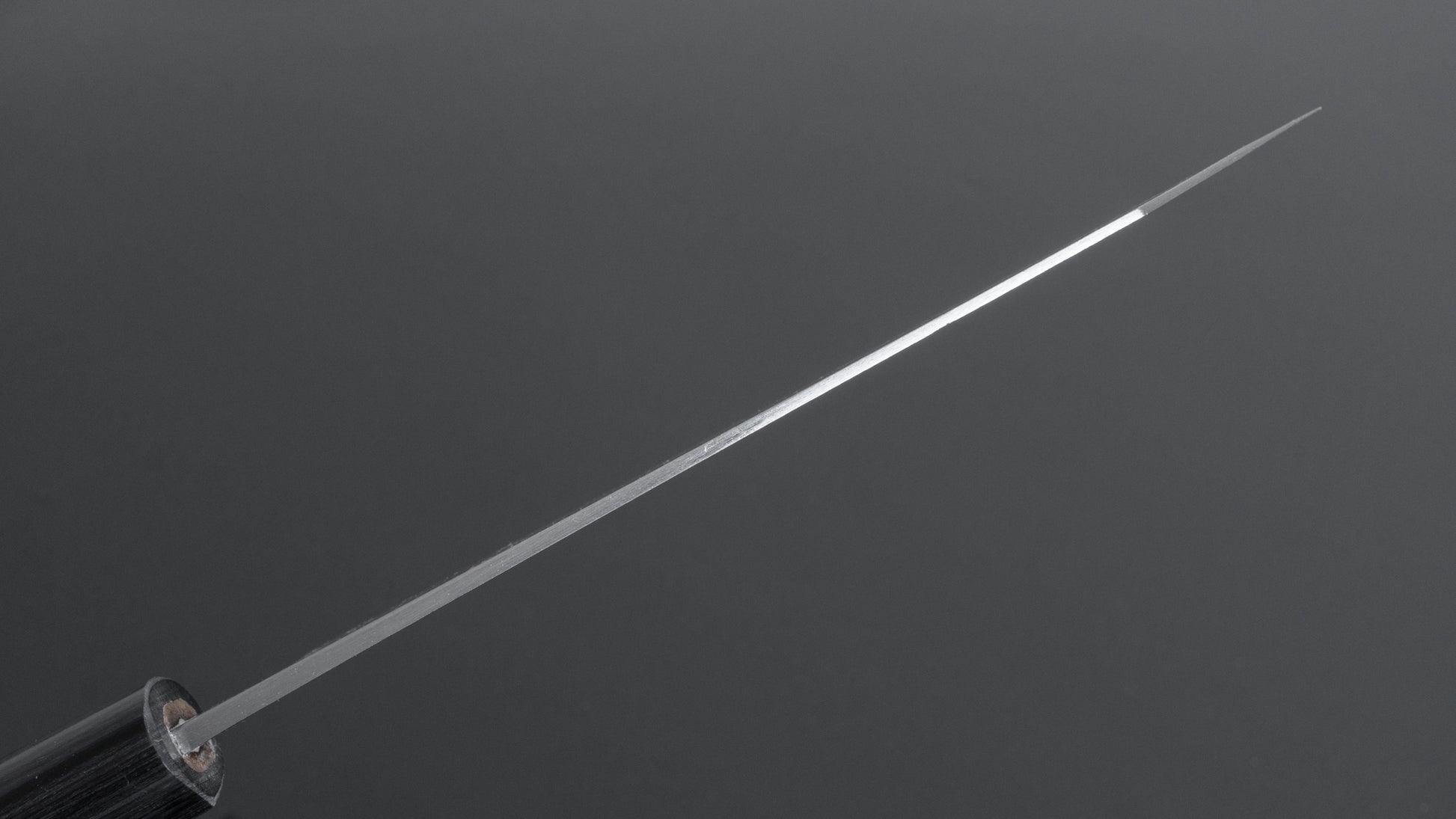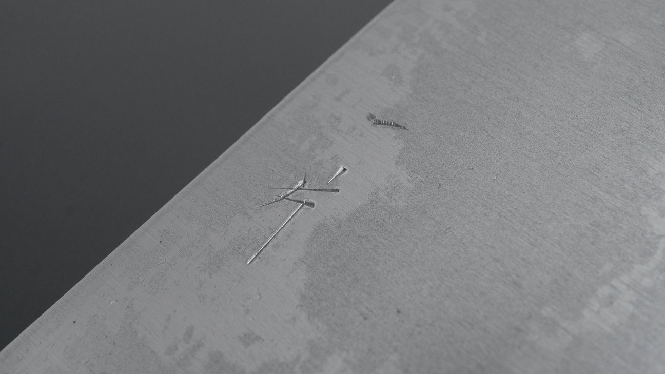 This is a carbon steel knife. Carbon steel is a non-stainless steel that lacks sufficient chromium and/or nickel to protect it from oxidation. As a result, it reacts to moisture and oxygen. While this may sound like a downside, it’s actually a key feature. Carbon steel forms a unique patina over time, is easy to sharpen, and offers excellent edge retention.