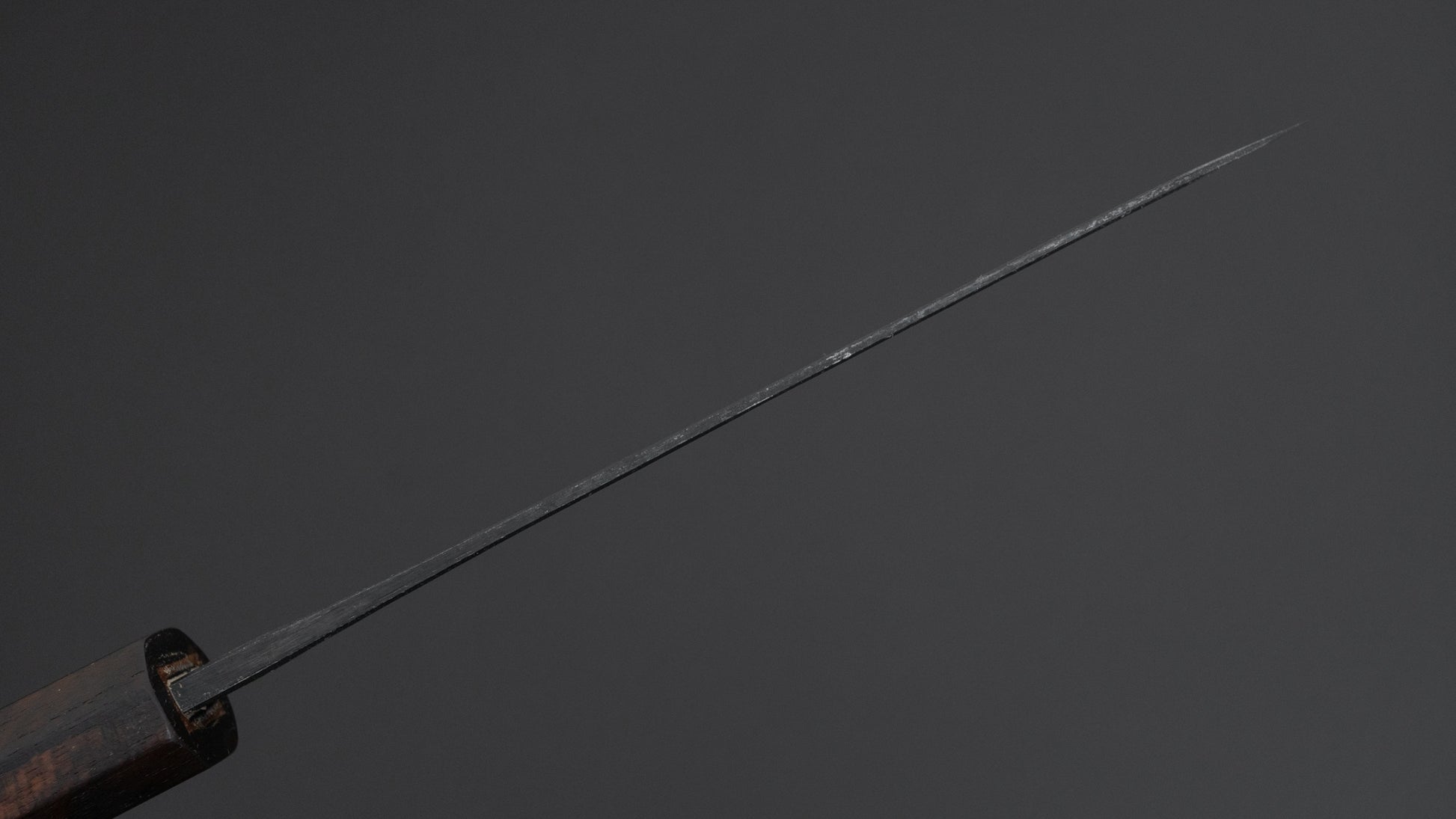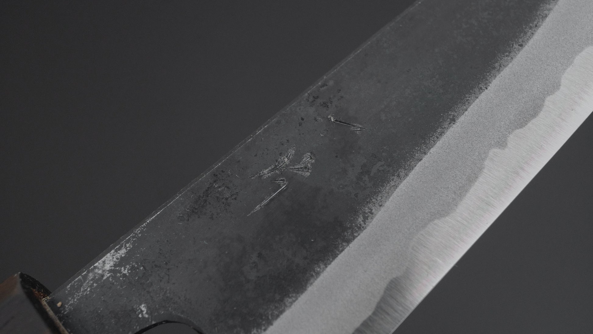 This is a carbon steel knife. Carbon steel is a non-stainless steel that lacks sufficient chromium and/or nickel to protect it from oxidation. As a result, it reacts to moisture and oxygen. While this may sound like a downside, it’s actually a key feature. Carbon steel forms a unique patina over time, is easy to sharpen, and offers excellent edge retention.