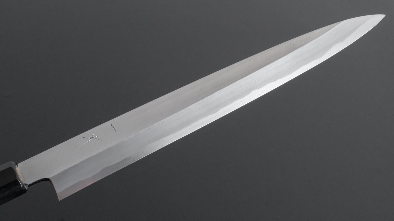 The traditional Japanese slicer. The king of knives and ofter referred to as ’Sushi knife’ it is used for slicing boneless protein. More specific and less versatile compared to the Sujihiki, the performance of the properly sharpened Yanagiba will yield much higher quality results due to their geometry and sharpness. Characteristics in steel are pronounced in single bevel knives and different sharpeners make for much variety.