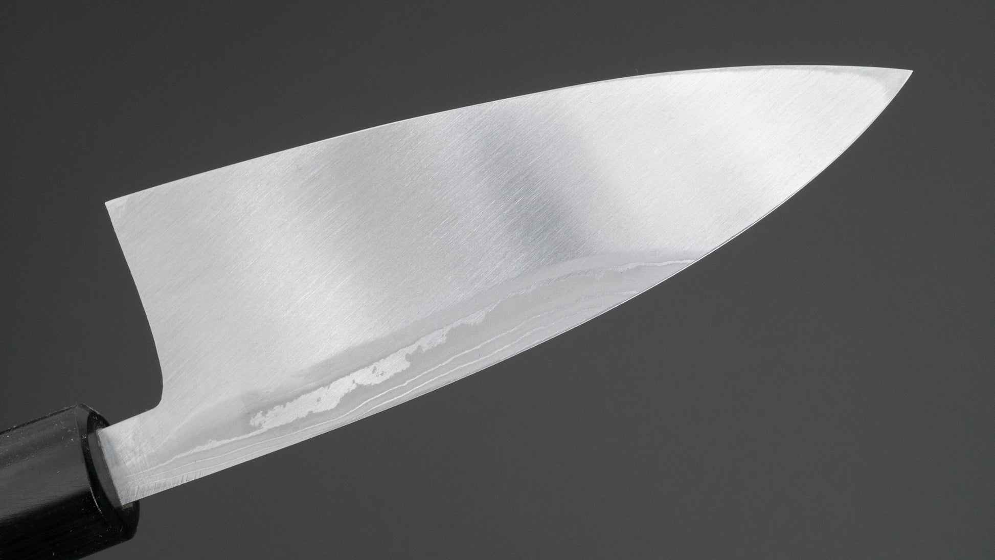 This is a carbon steel knife. Carbon steel is a non-stainless steel that lacks sufficient chromium and/or nickel to protect it from oxidation. As a result, it reacts to moisture and oxygen. While this may sound like a downside, it’s actually a key feature. Carbon steel forms a unique patina over time, is easy to sharpen, and offers excellent edge retention.