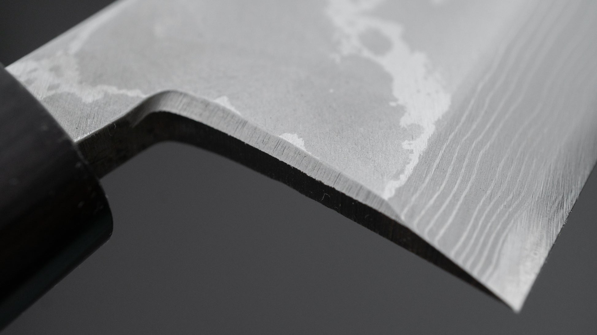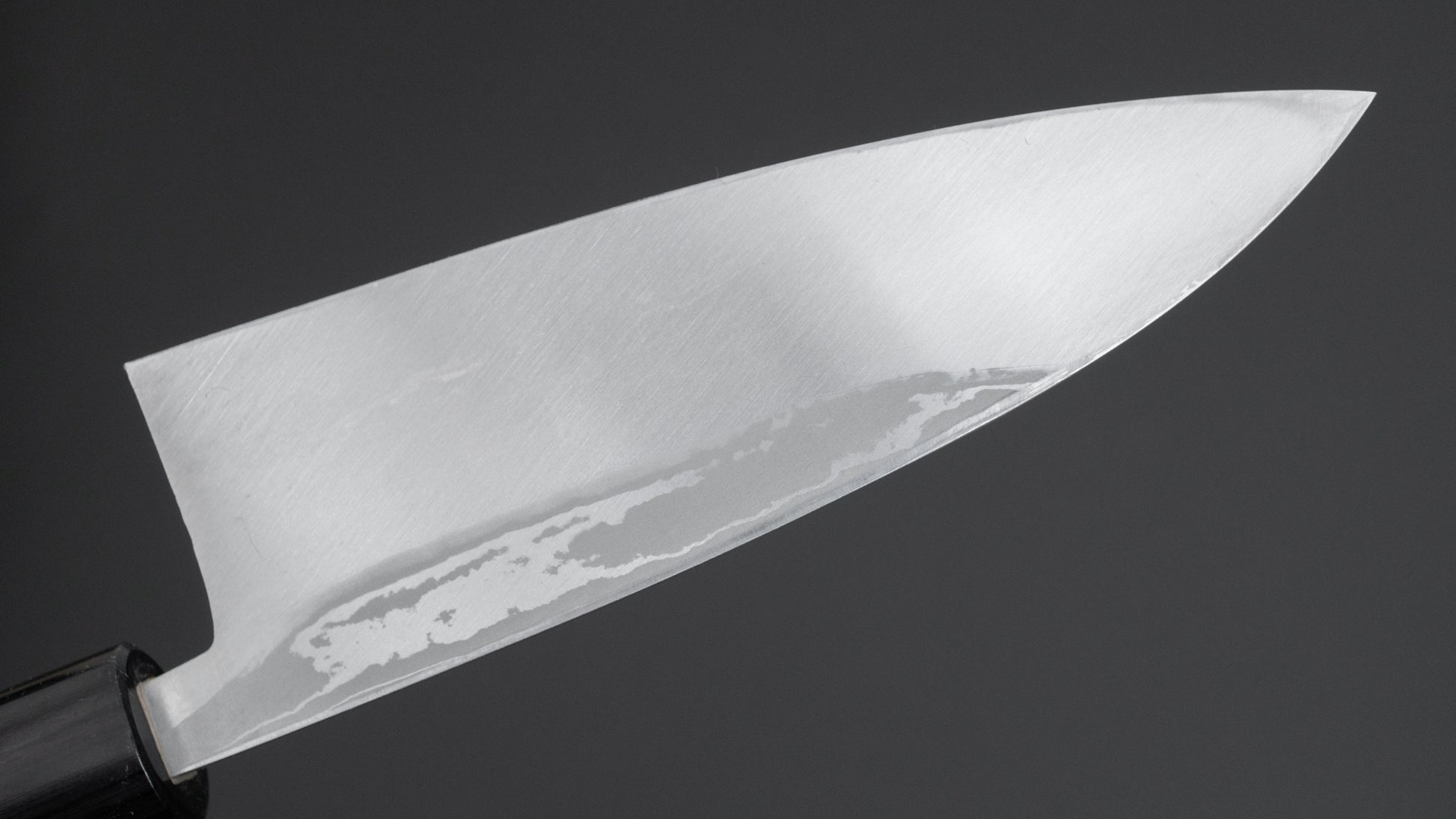 This is a carbon steel knife. Carbon steel is a non-stainless steel that lacks sufficient chromium and/or nickel to protect it from oxidation. As a result, it reacts to moisture and oxygen. While this may sound like a downside, it’s actually a key feature. Carbon steel forms a unique patina over time, is easy to sharpen, and offers excellent edge retention.