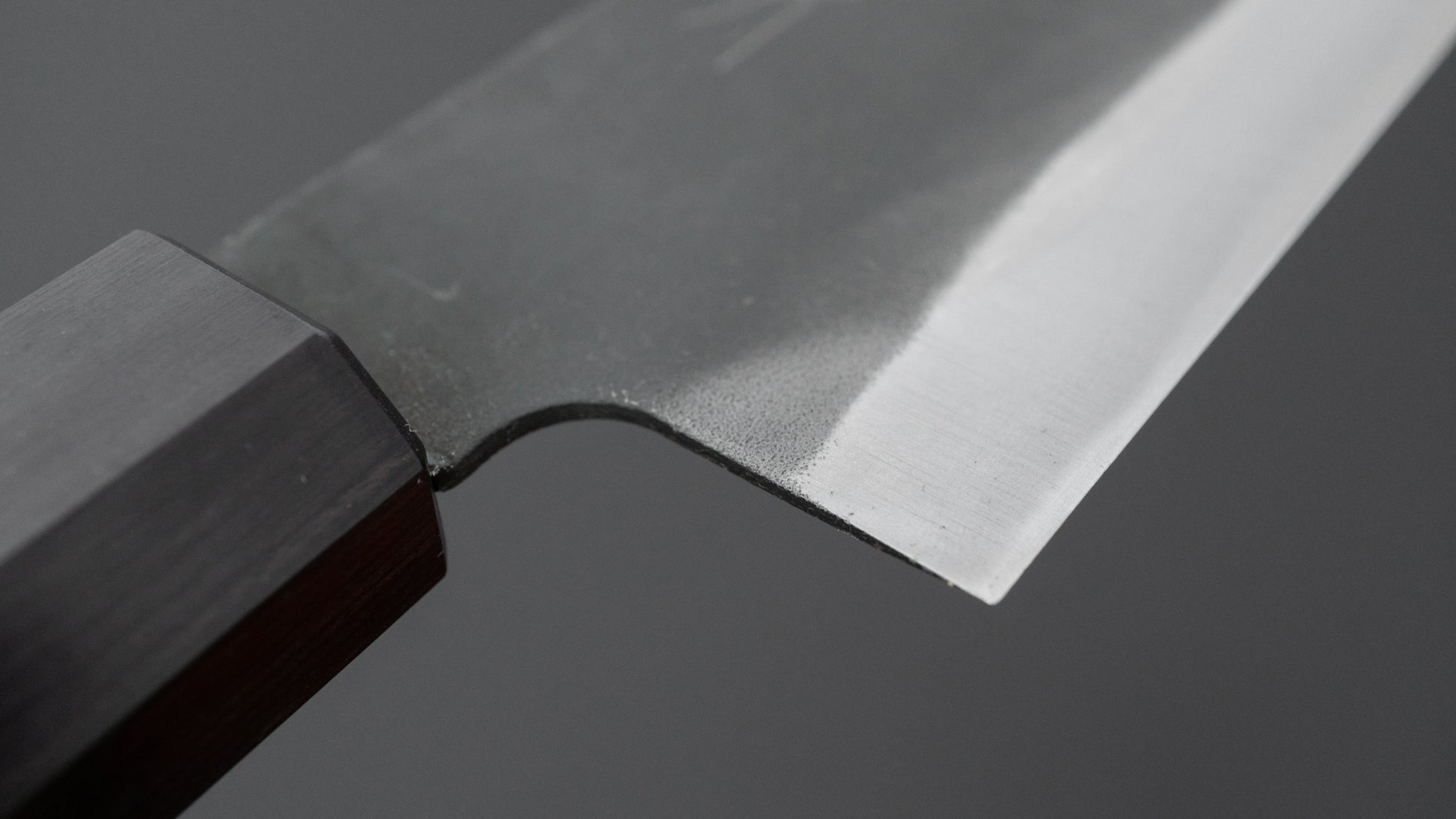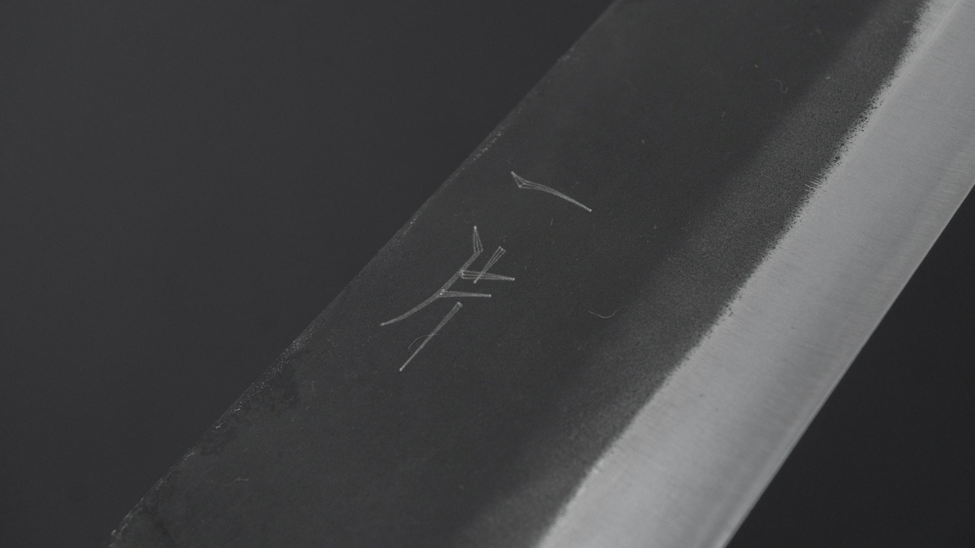 This is a carbon steel knife with a soft stainless steel cladding. Many Japanese knives are constructed with a 3-layer design known as “San Mai,” where a hard, high-quality steel core is sandwiched between two layers of softer steel or iron. In this case, the core is made of carbon steel, while the outer layers, or cladding, are composed of stainless steel. This construction combines the benefits of a carbon steel edge, such as easy sharpening and excellent edge retention, with the added corrosion resistance of stainless steel for the rest of the blade.