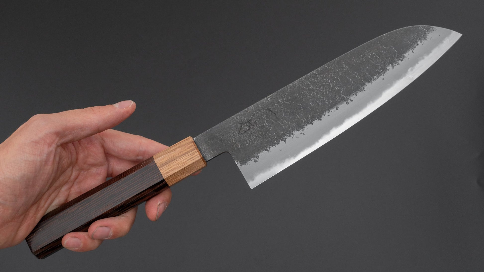 The Santoku is every bit as versatile as a Gyuto, but it’s more at home in everyday cooking. Probably the most used to-go knife at home. It’s easy to handle, super nimble, and great for just about any kitchen task.